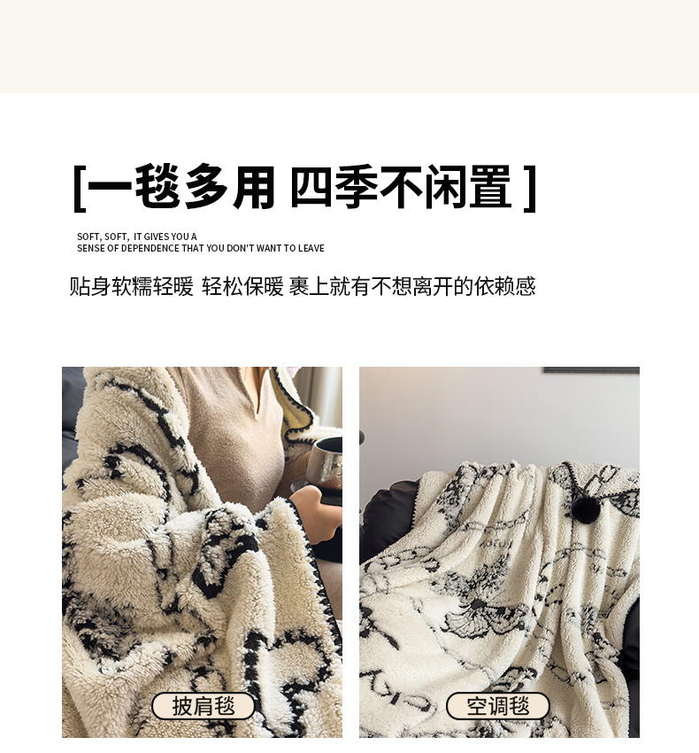 商品名称:(总)潮邦创意家居 2025新款提花色织三角针工艺球毯毛毯毯子墨绒秘境