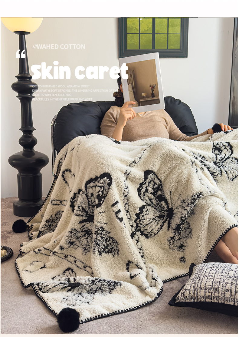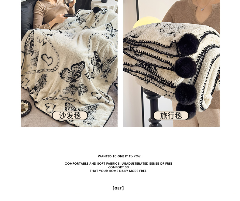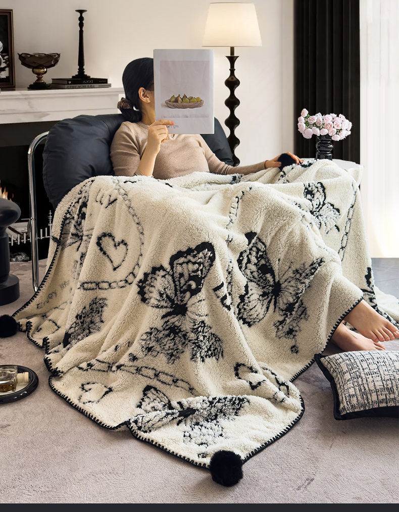 (总)潮邦创意家居 2025新款提花色织三角针工艺球毯毛毯毯子墨绒秘境