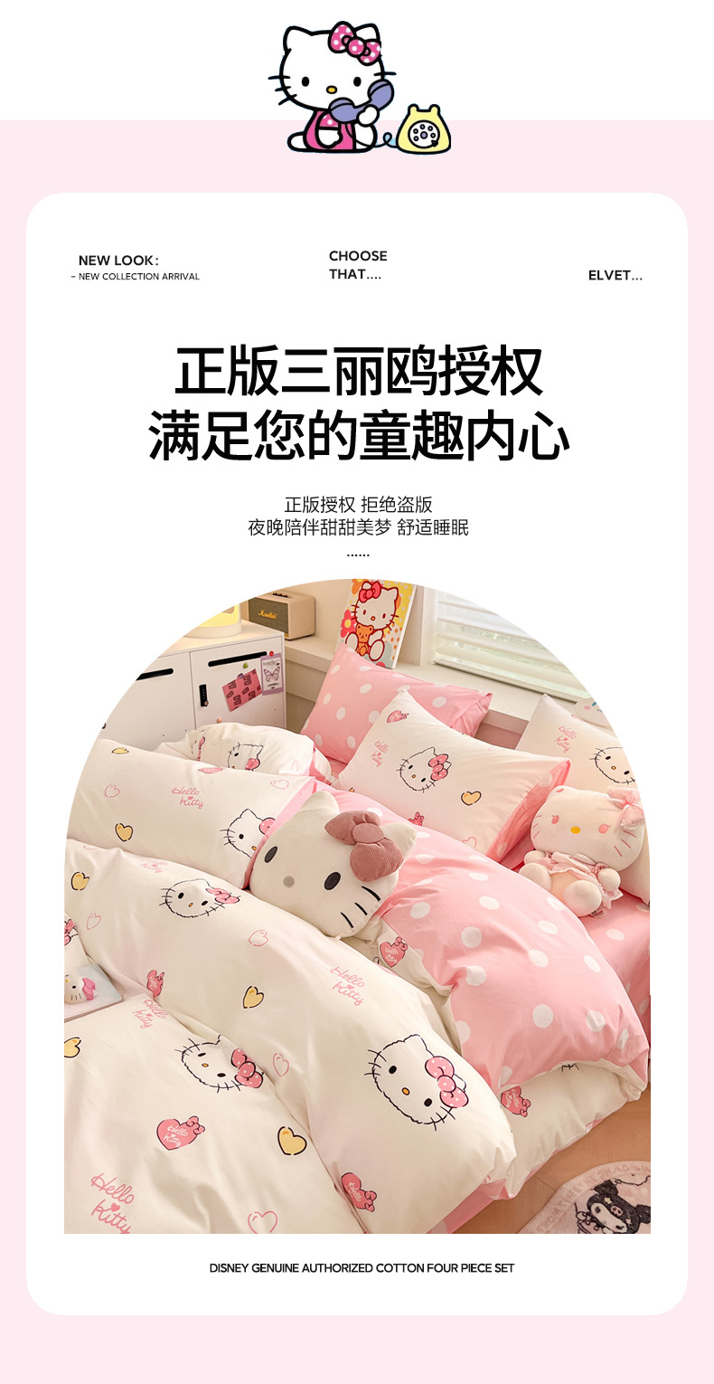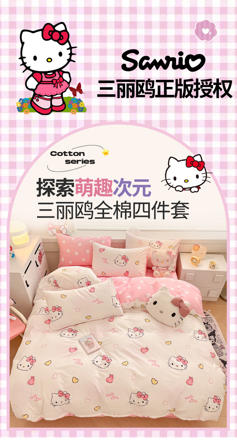 当前位置: 91家纺网 > 商品网购 > 床品套件 > 四件套 > 全棉普通四件套 > 暮思家居 2026新款正版授权三丽鸥全棉纯棉四件套系列-第一批 少女凯蒂