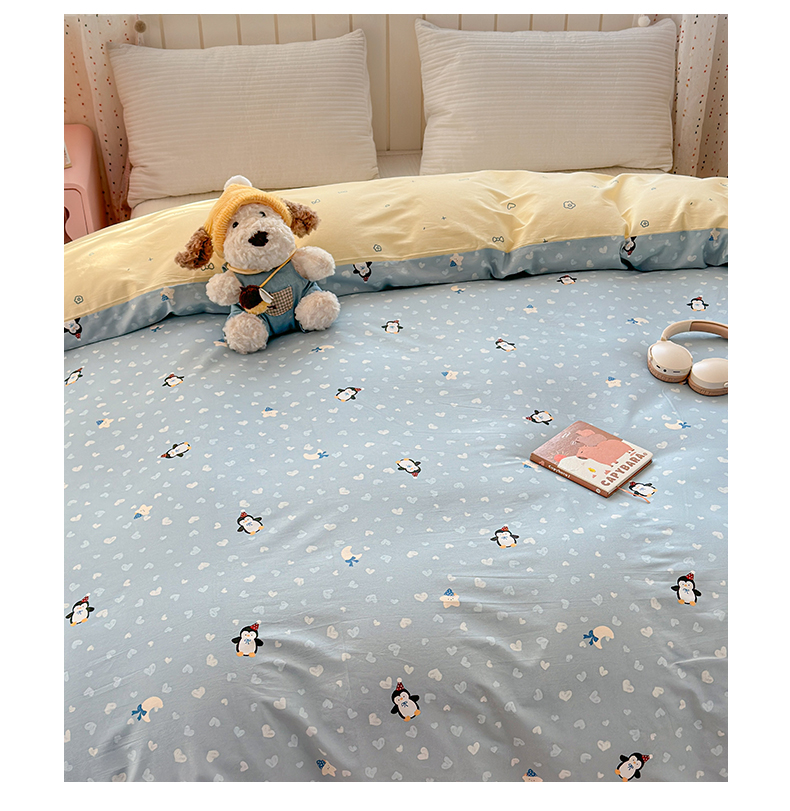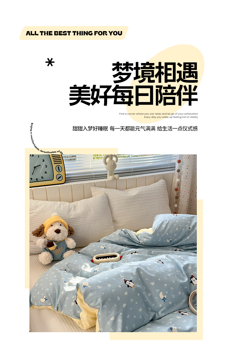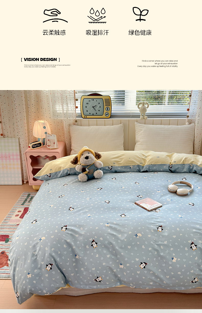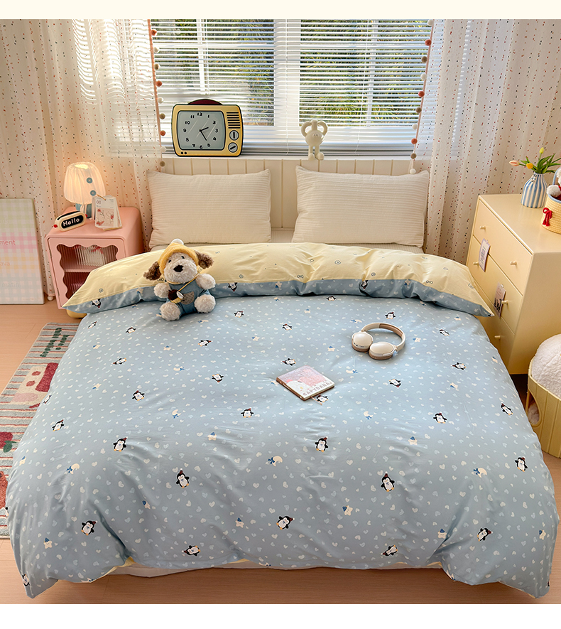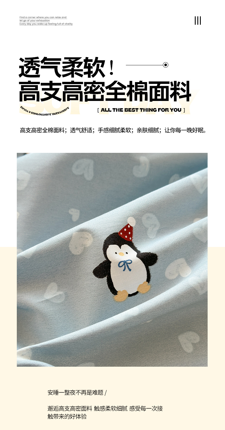 • 91家纺网 家纺一手货源 找家纺 清雅福 2026春夏新款INS小清新40支全棉13372单被套第二批 星星企鹅