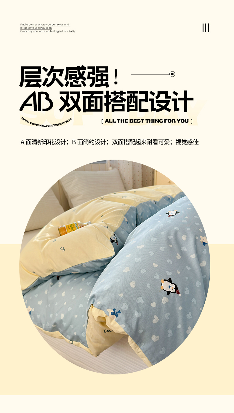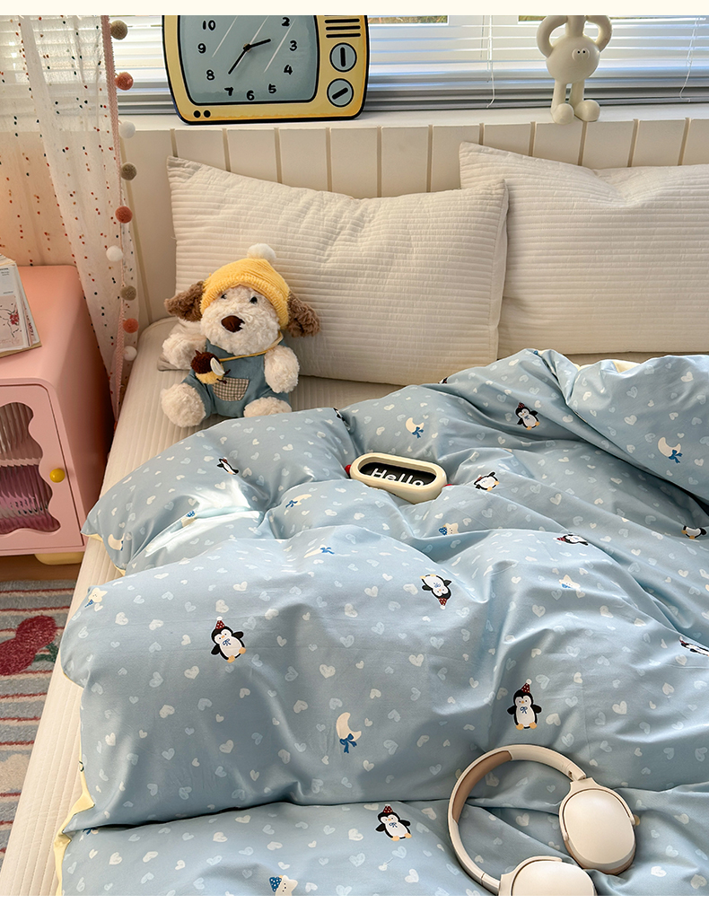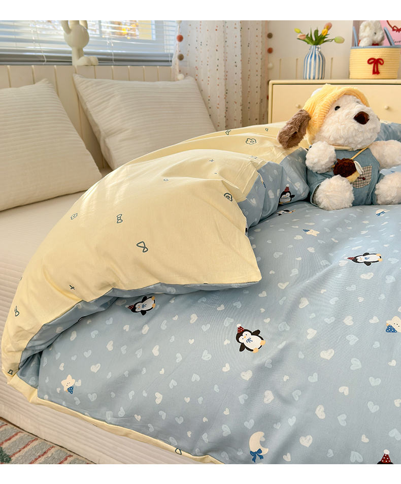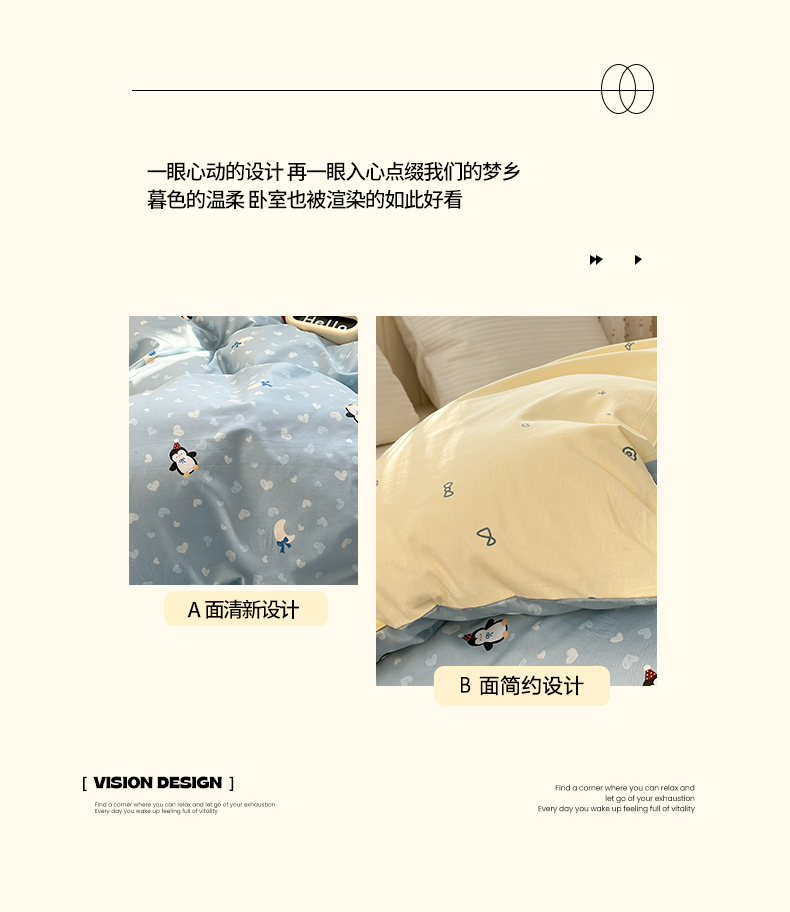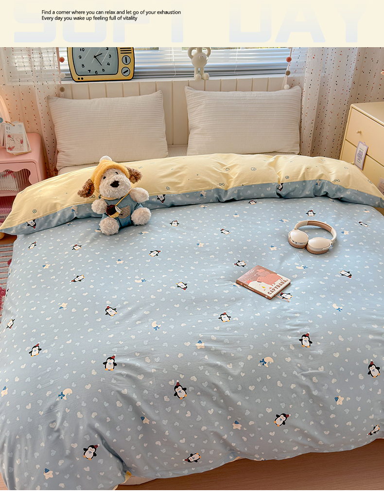 • 91家纺网 家纺一手货源 找家纺 清雅福 2026春夏新款INS小清新40支全棉13372单被套第二批 星星企鹅
