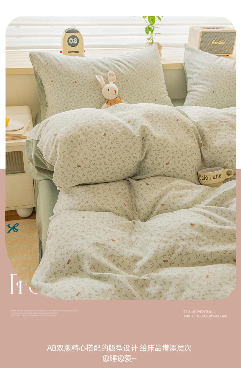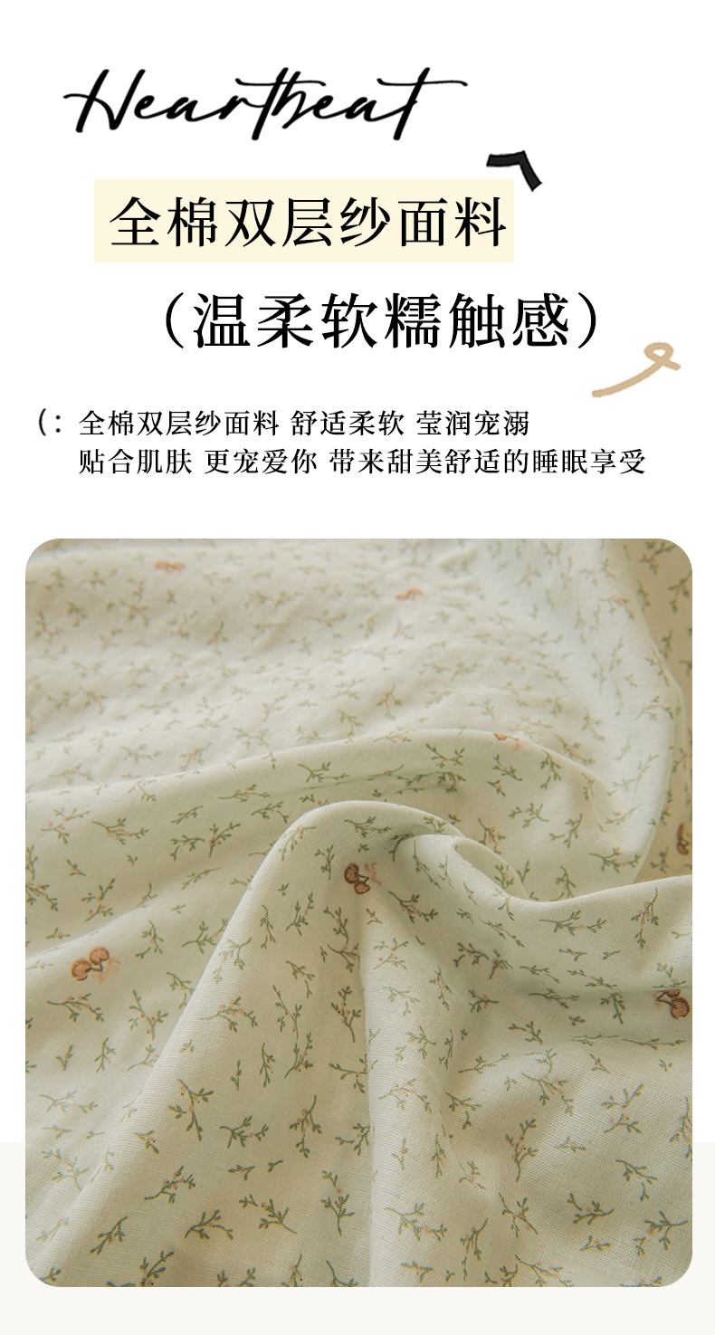 商品名称:雯雨家纺 2026新款A类全棉有氧双层纱单被套 雪妮