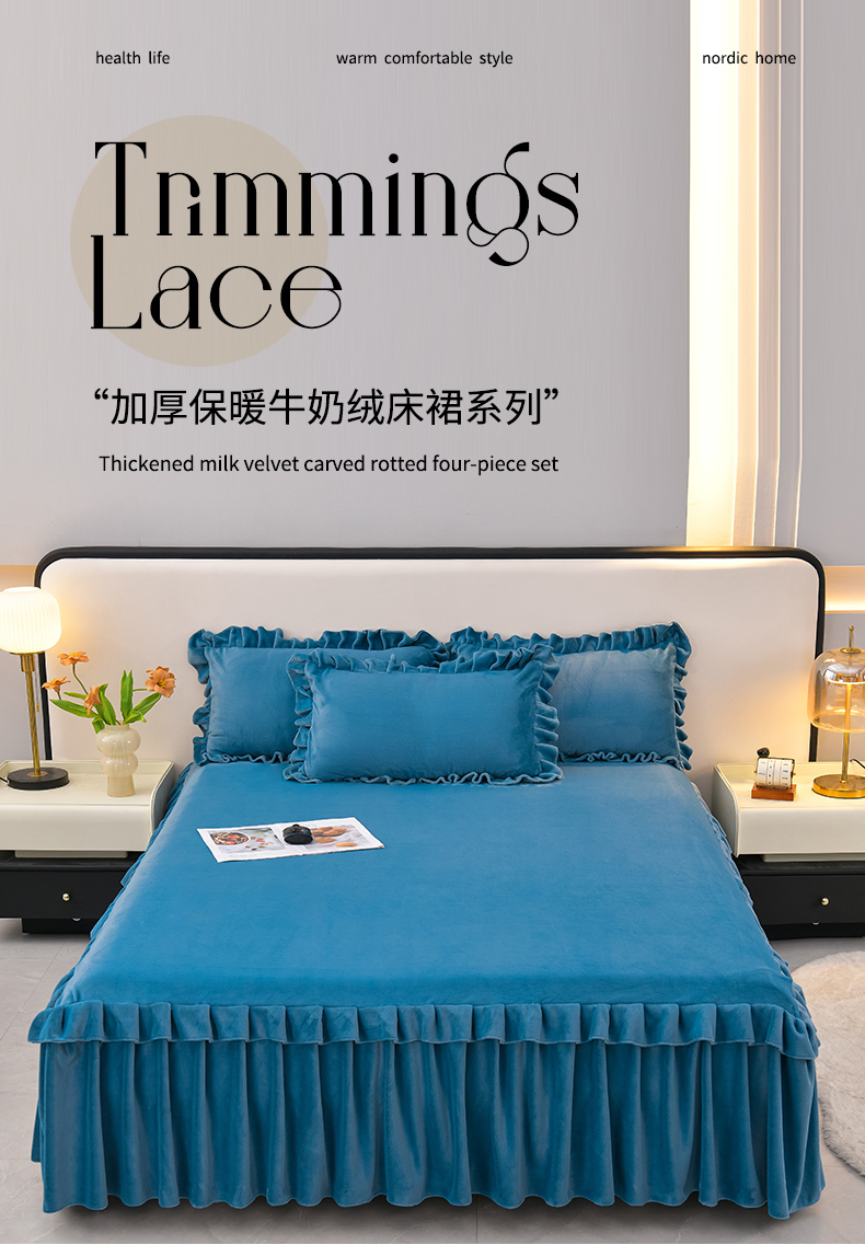 (总)优家居工厂店 2026新款纯色韩版花边牛奶绒床裙床罩加厚直播外贸可定做,盛世-宝蓝,盛世-翠绿,盛世-豆沙,盛世-粉玉,盛世-魅紫,盛世-米白,盛世-杏黄,盛世-银灰