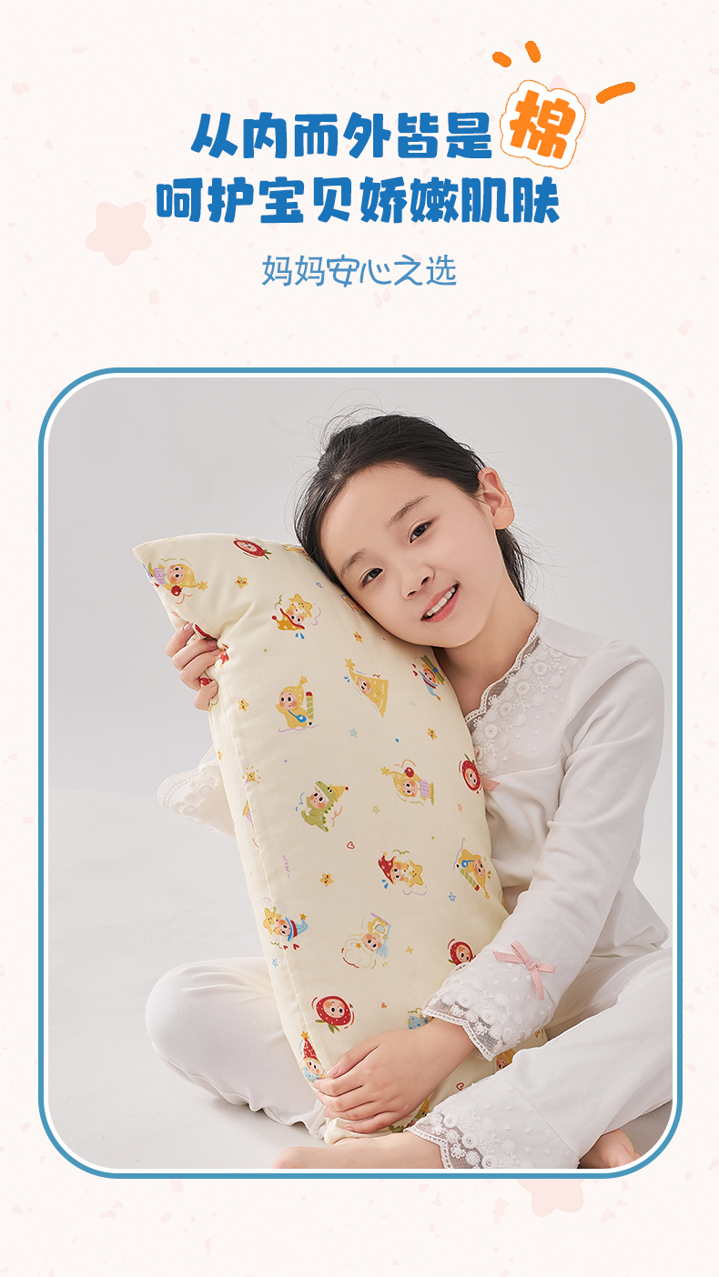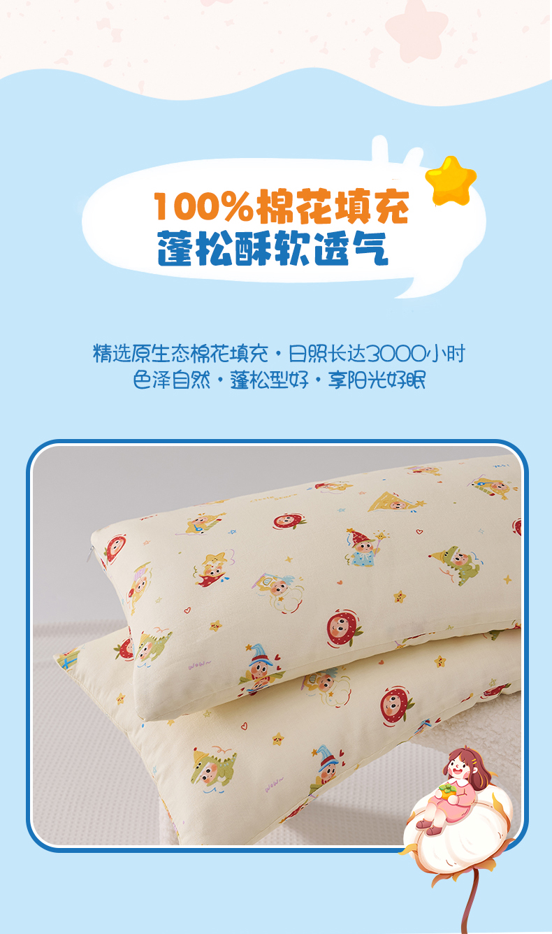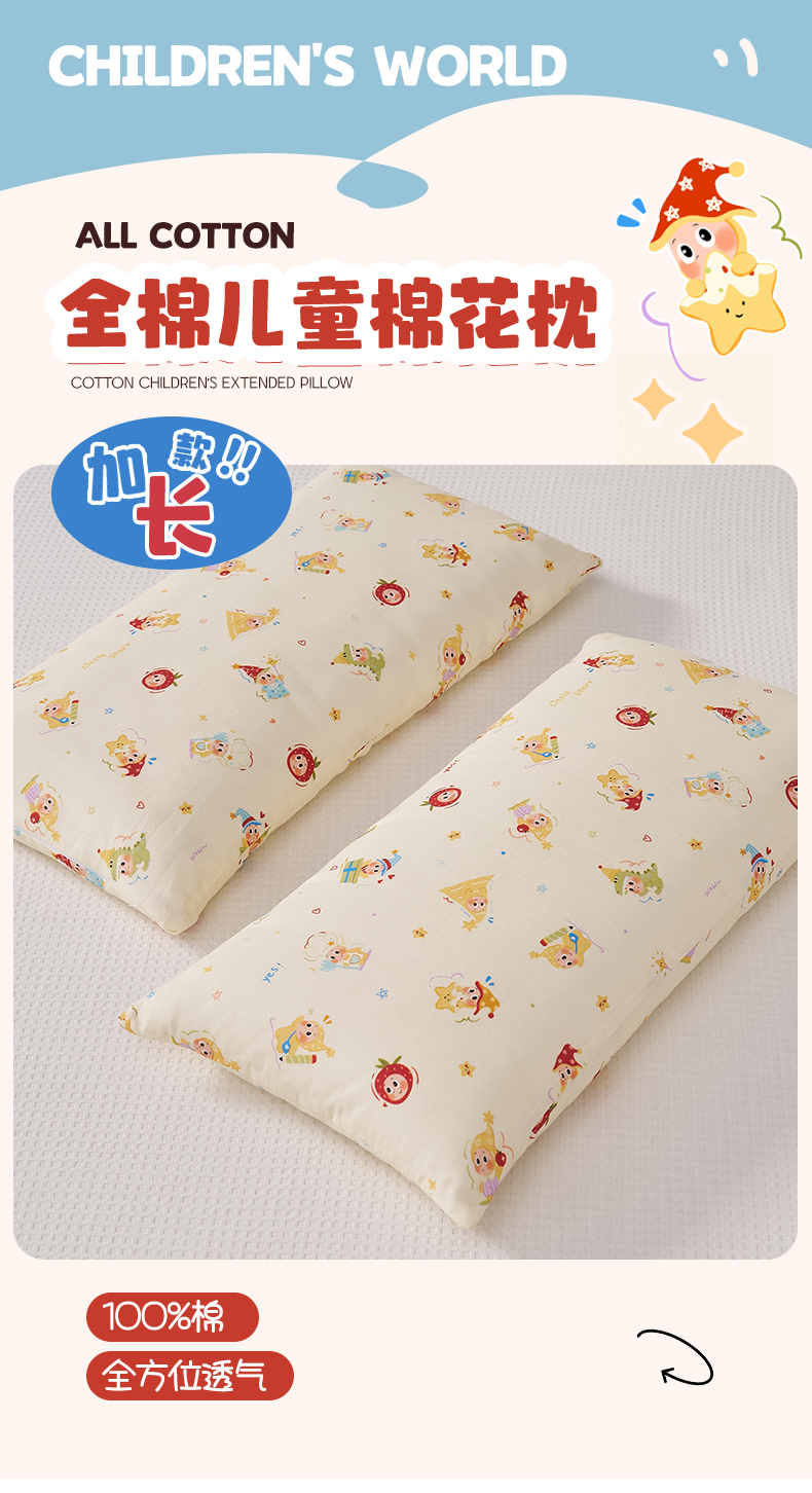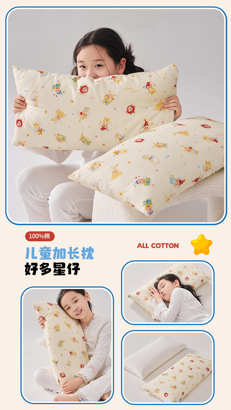 暖阳 2026新款儿童全棉加长款棉花枕 儿童加长枕-好多星仔