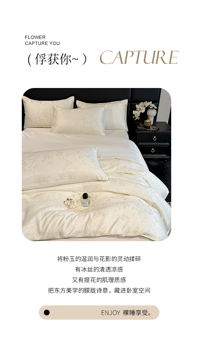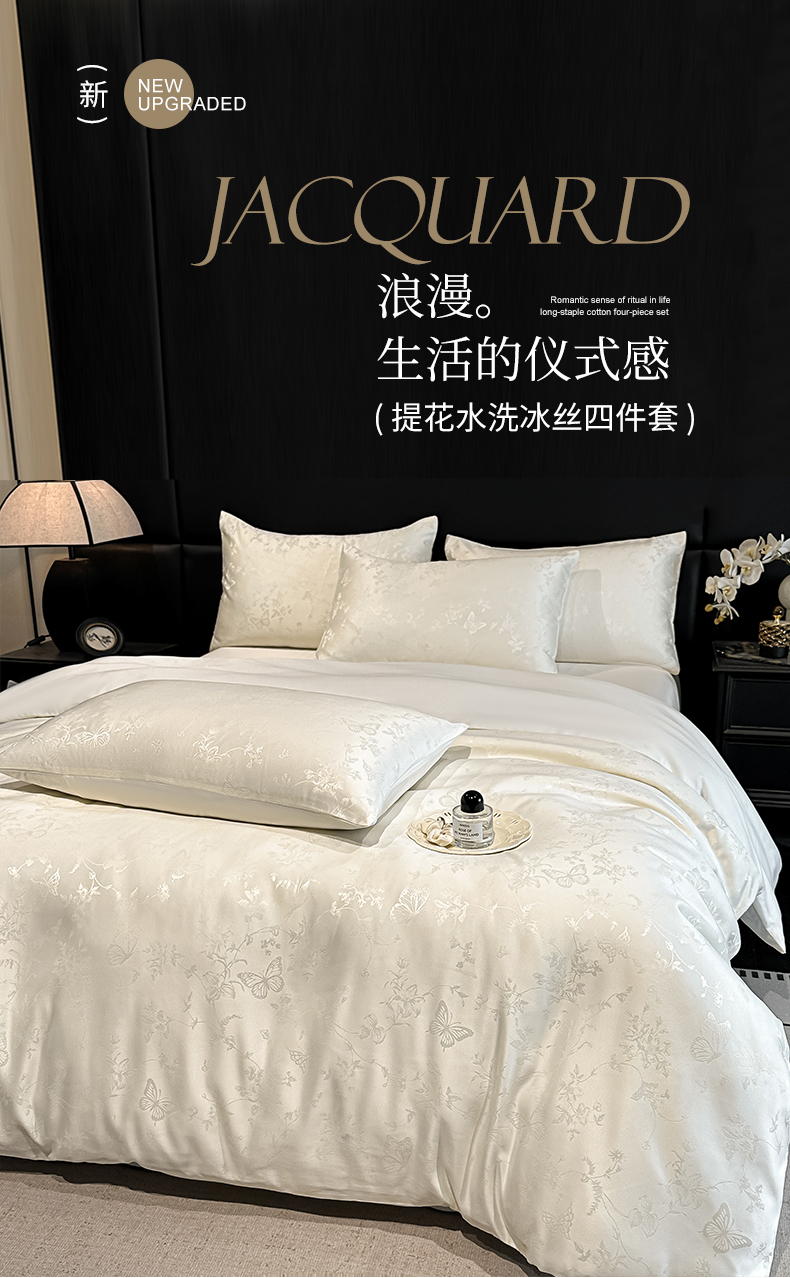 当前位置: 91家纺网 > 商品网购 > 床品套件 > 四件套 > 其它四件套 > 顺兴家居 2026新款提花水洗真丝四件套 雾中花影-米白