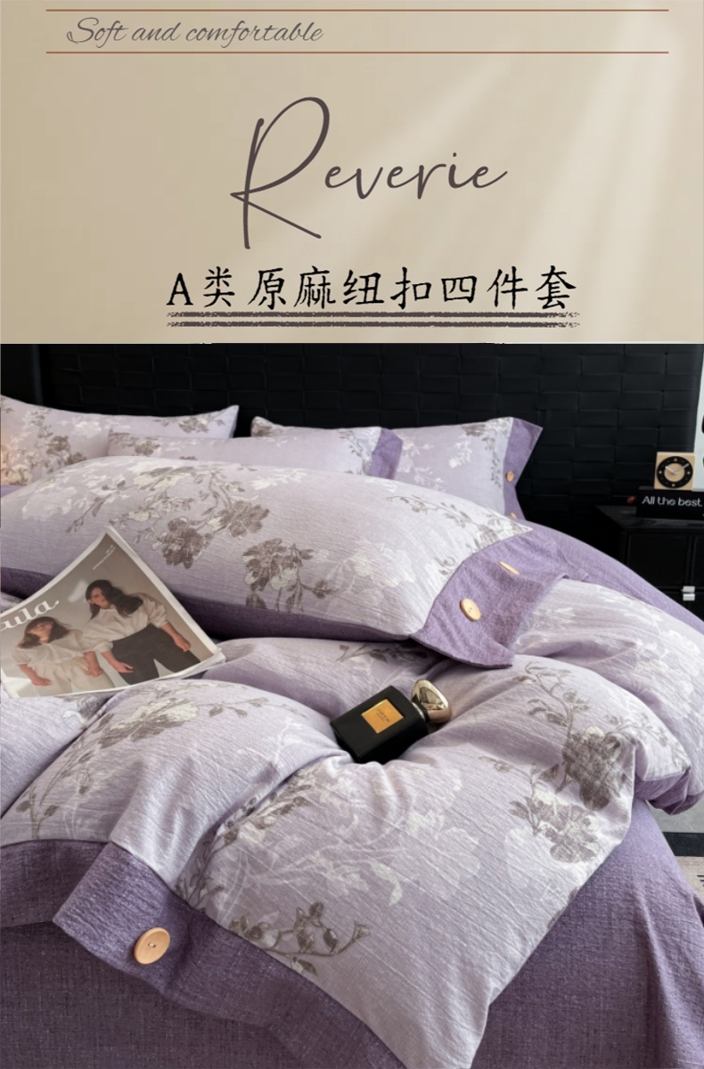 当前位置: 91家纺网 > 商品网购 > 床品套件 > 四件套 > 其它四件套 > 圣比熊 2026春夏新款A类原麻纽扣四件套加厚被套床单宿舍双人床仿亚麻套件-最新款 春风序