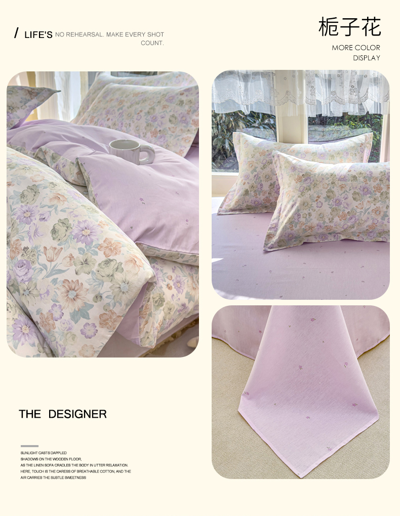 当前位置: 91家纺网 > 商品网购 > 床品套件 > 四件套 > 全棉普通四件套 > 洺兰家居 2026新款全棉纯棉13070小清新印花四件套 优雅生活
