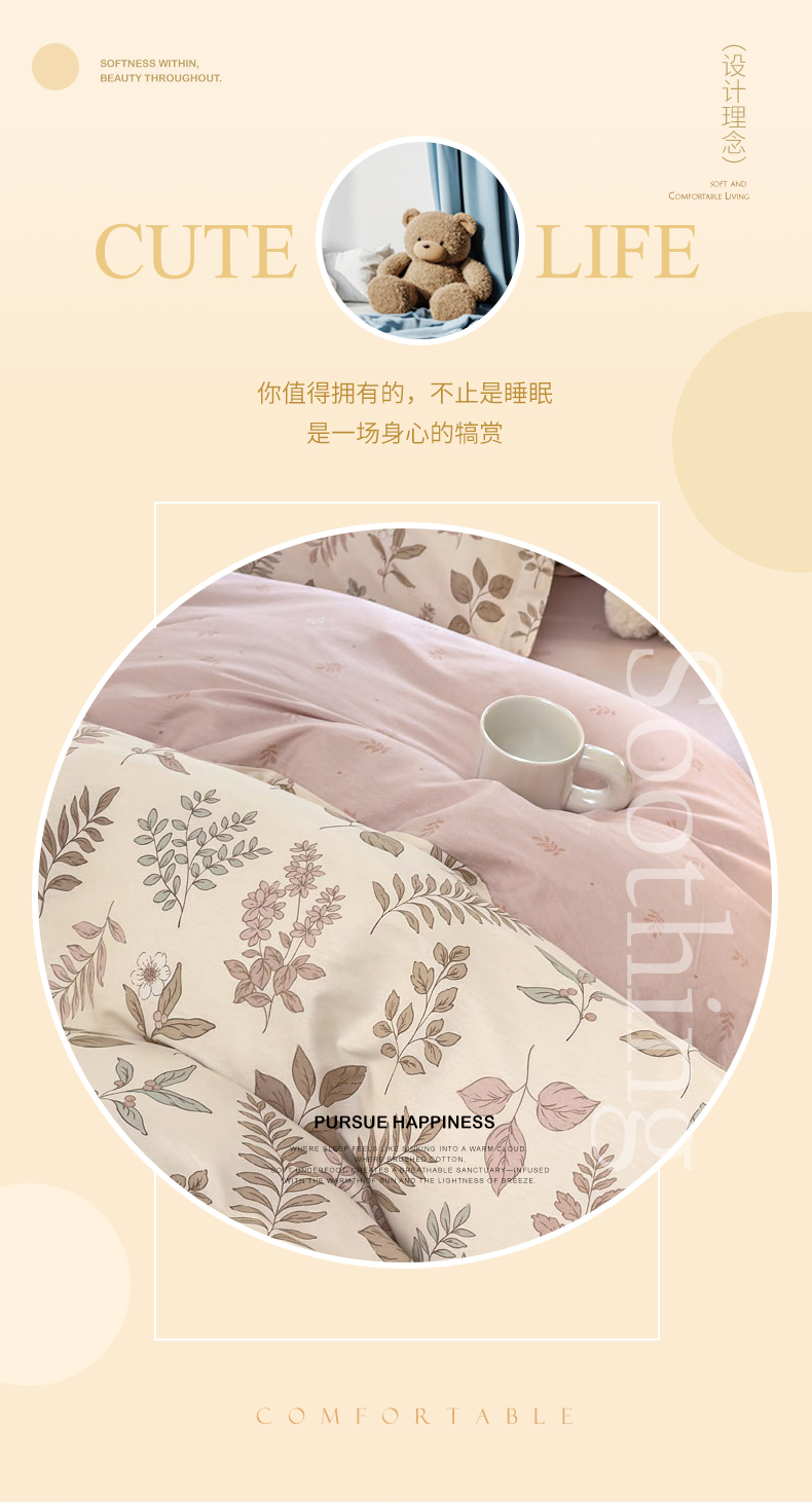 商品名称:洺兰家居 2026新款全棉纯棉13070小清新印花单被套被套单件 晚风细语
