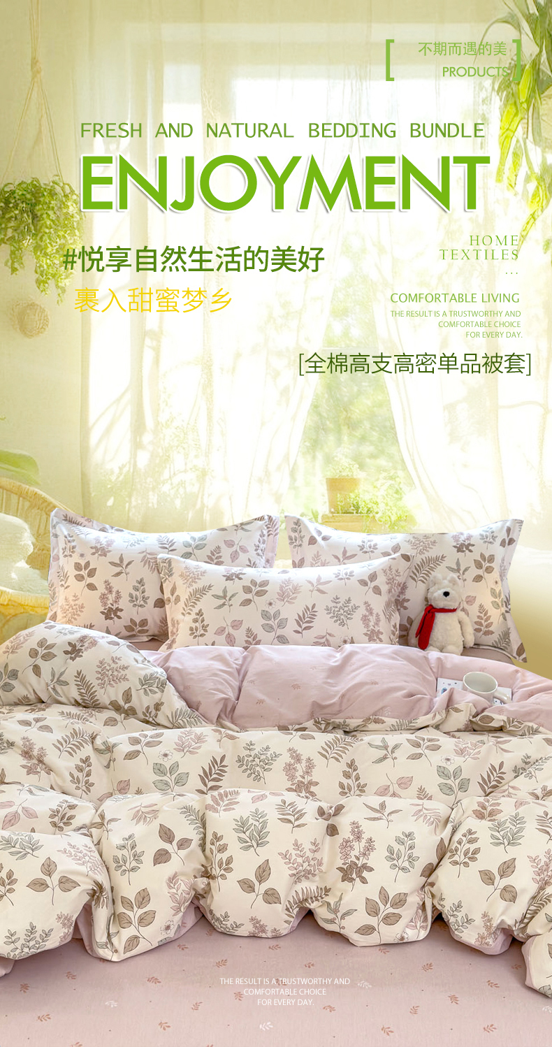 洺兰家居 2026新款全棉纯棉13070小清新印花单被套被套单件 晚风细语