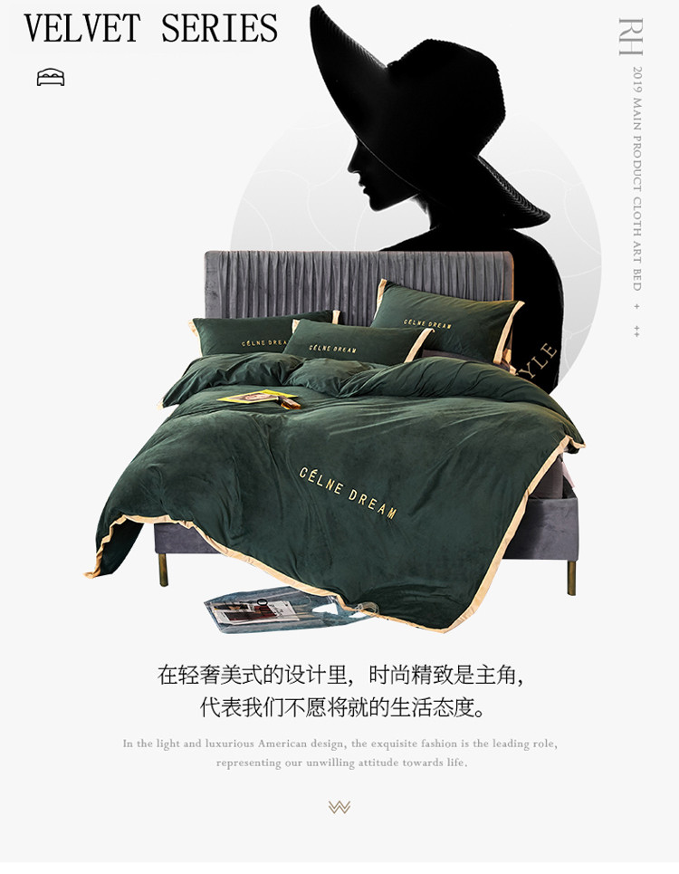 商品名称:(总)安妮2020赛琳娜丽丝绒水晶绒四件套床笠款带包装棚拍图