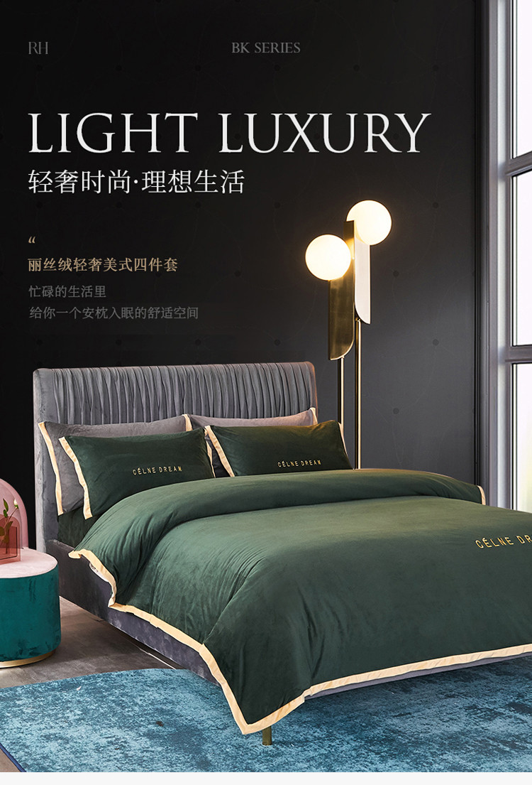 (总)安妮2020赛琳娜丽丝绒水晶绒四件套床笠款带包装棚拍图