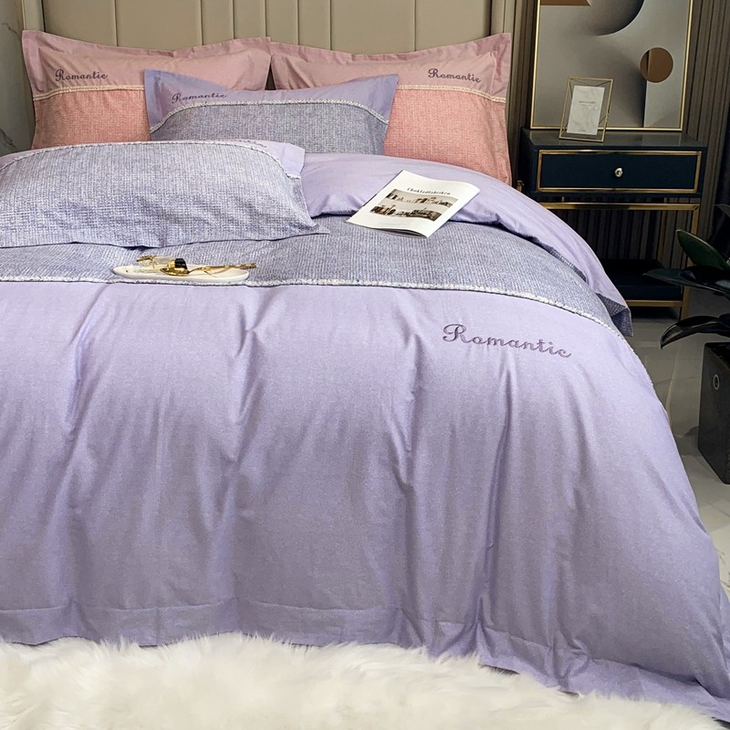 榻尚家居新款80长绒棉贡缎磨毛小香风全棉加厚磨毛四件套 紫