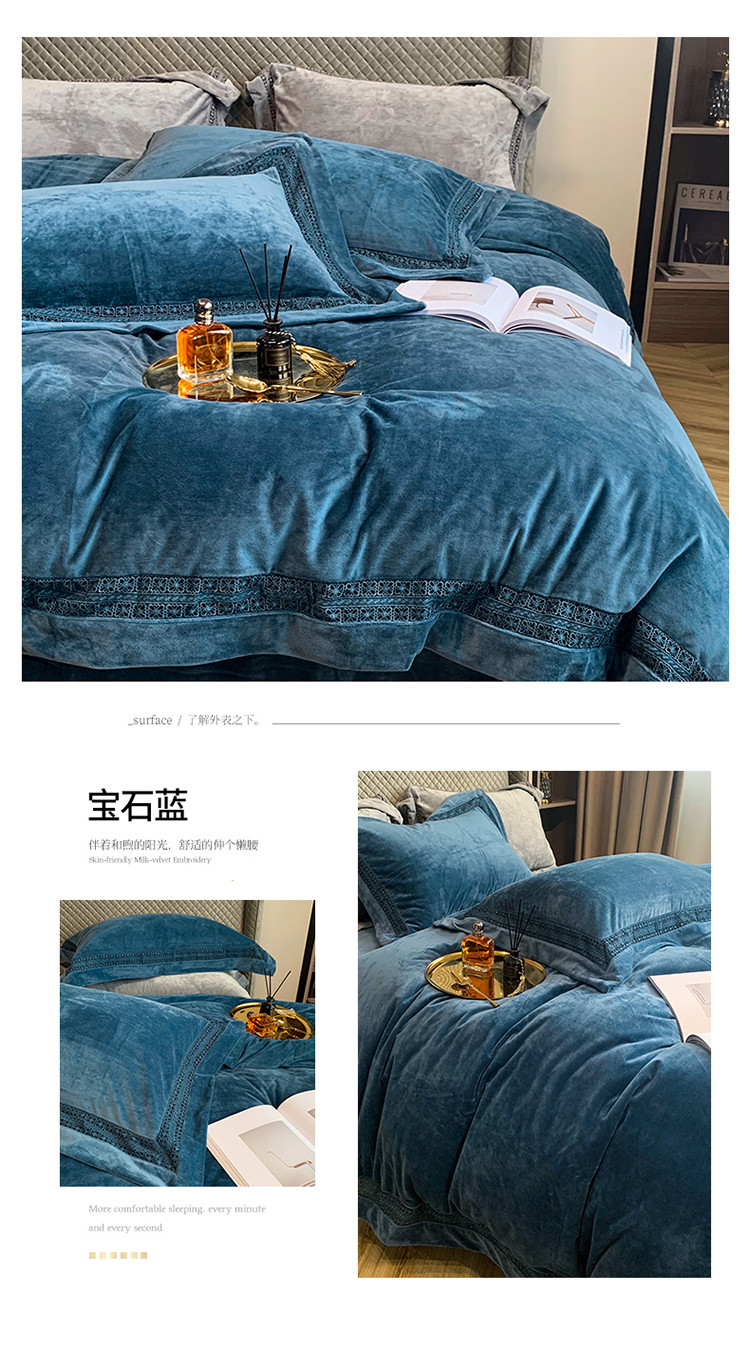 商品名称:榻尚 2023新款婴儿绒牛奶绒纯色镂空高端绒四件套 宝石蓝