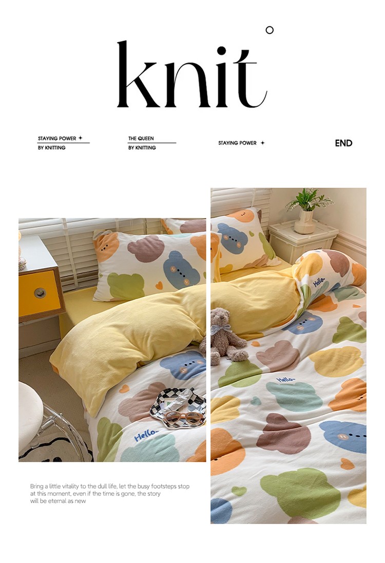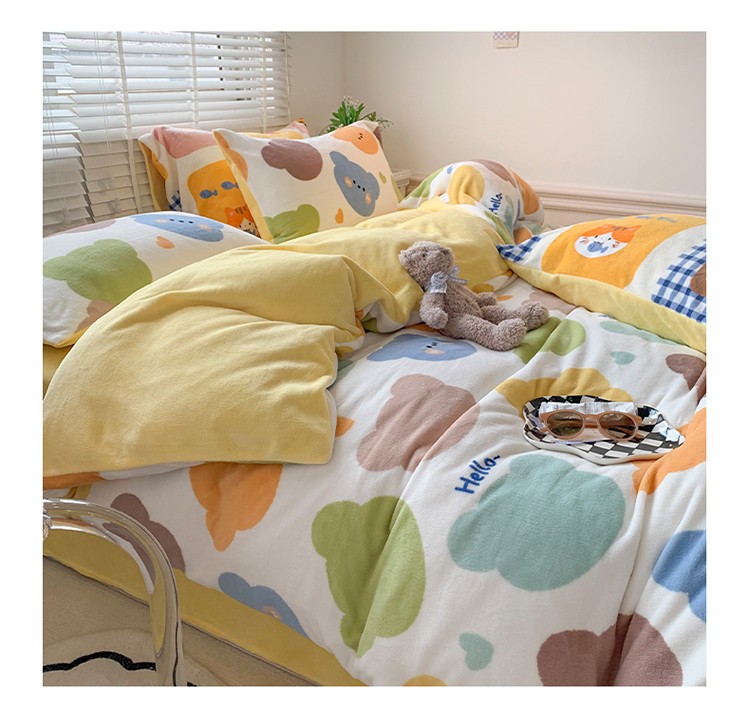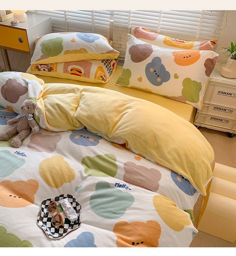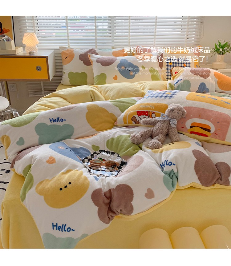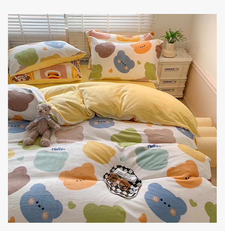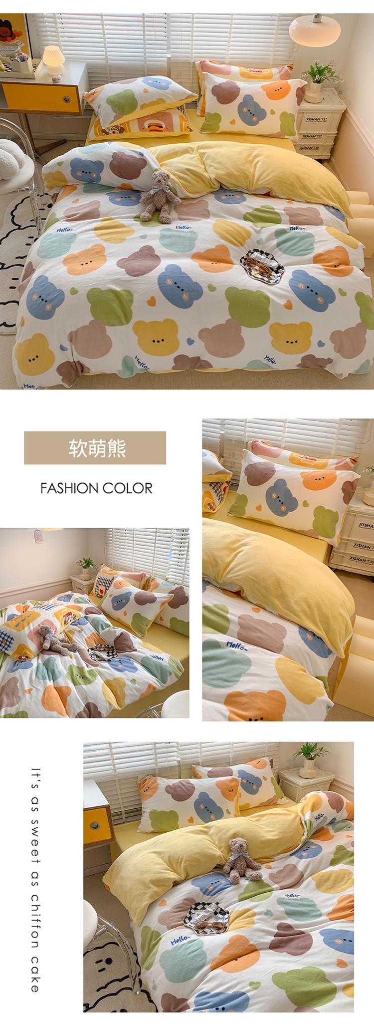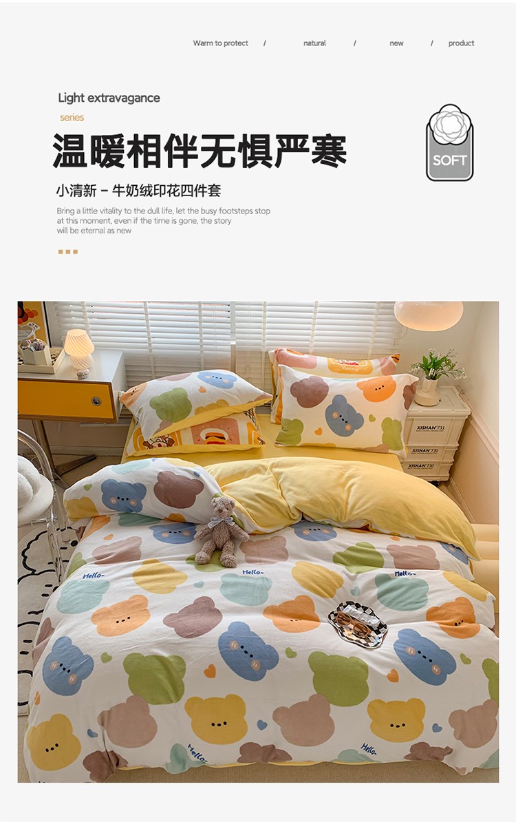 商品名称:澳萝拉 2022新款牛奶绒印花四件套 软萌熊
