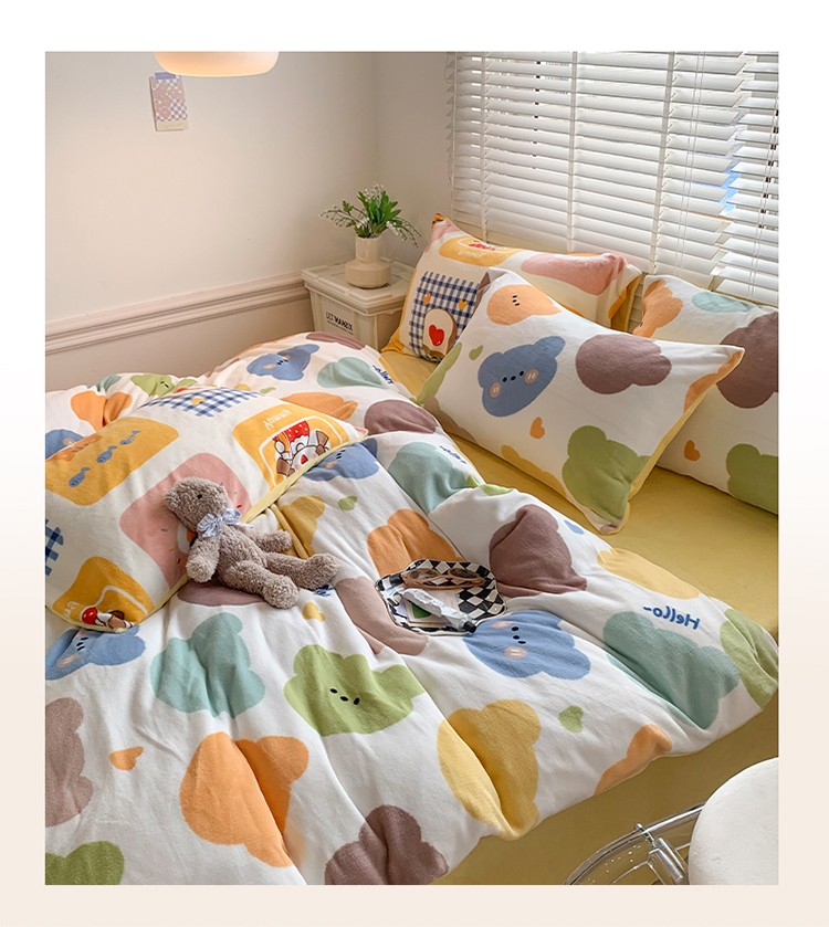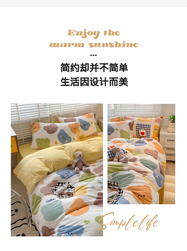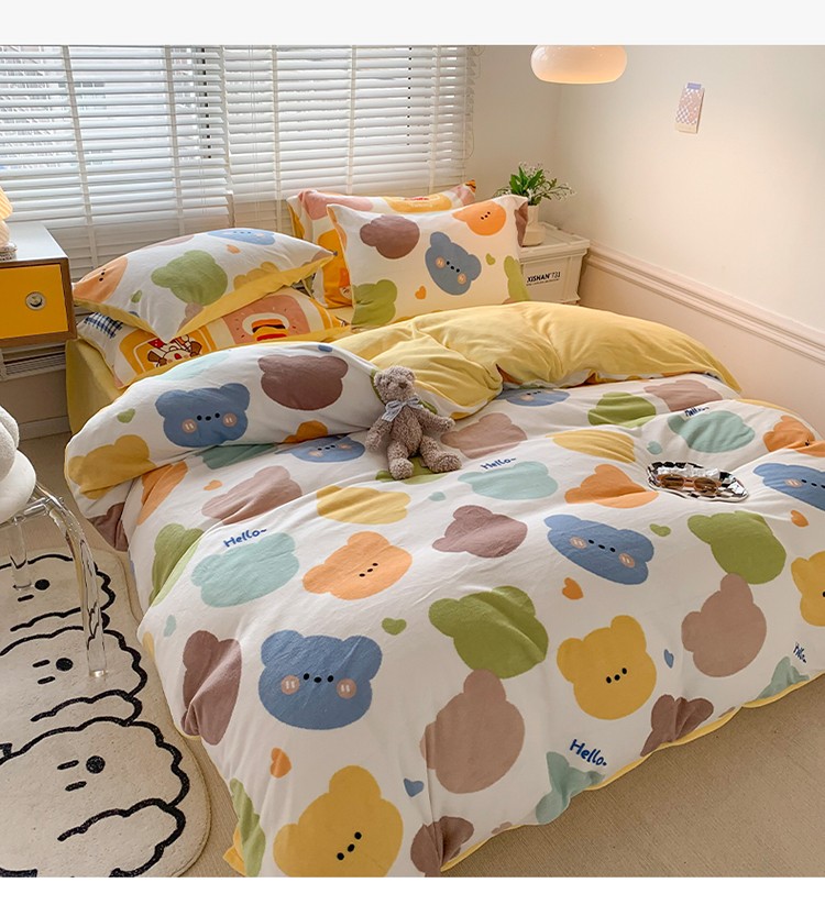 澳萝拉 2022新款牛奶绒印花四件套 软萌熊