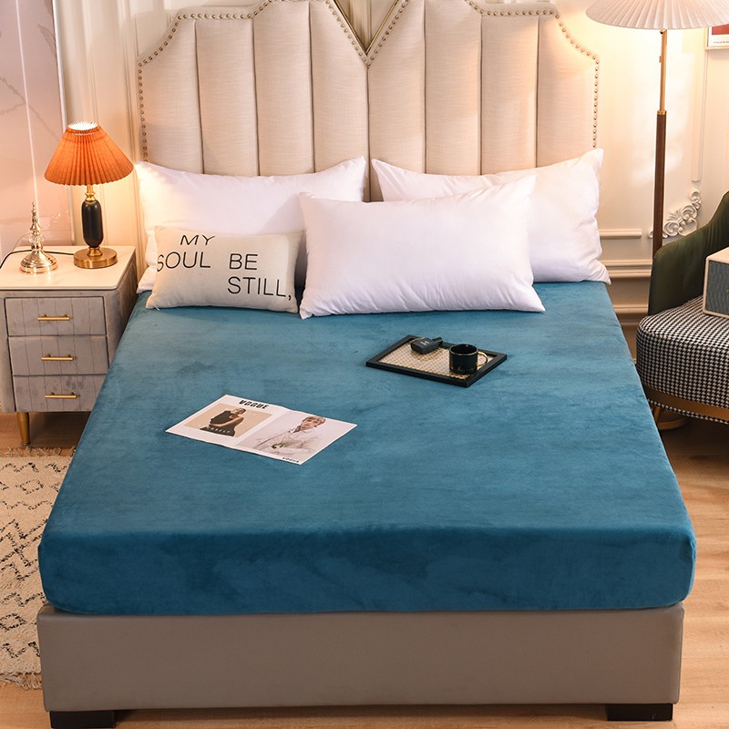 总甜之梦家纺 2025新款韩版泥点绒单床笠(任何尺寸异型缺角都可定做),贵族蓝,玛瑙绿,泥点绒淡粉,优雅灰