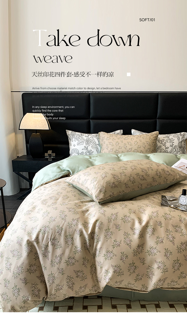 (总)澳萝拉 2023新款天丝印花四件套,芳馨,菲扬,江夏,恋馨,柠染-粉,浅语初开-米,叶飘,月韵