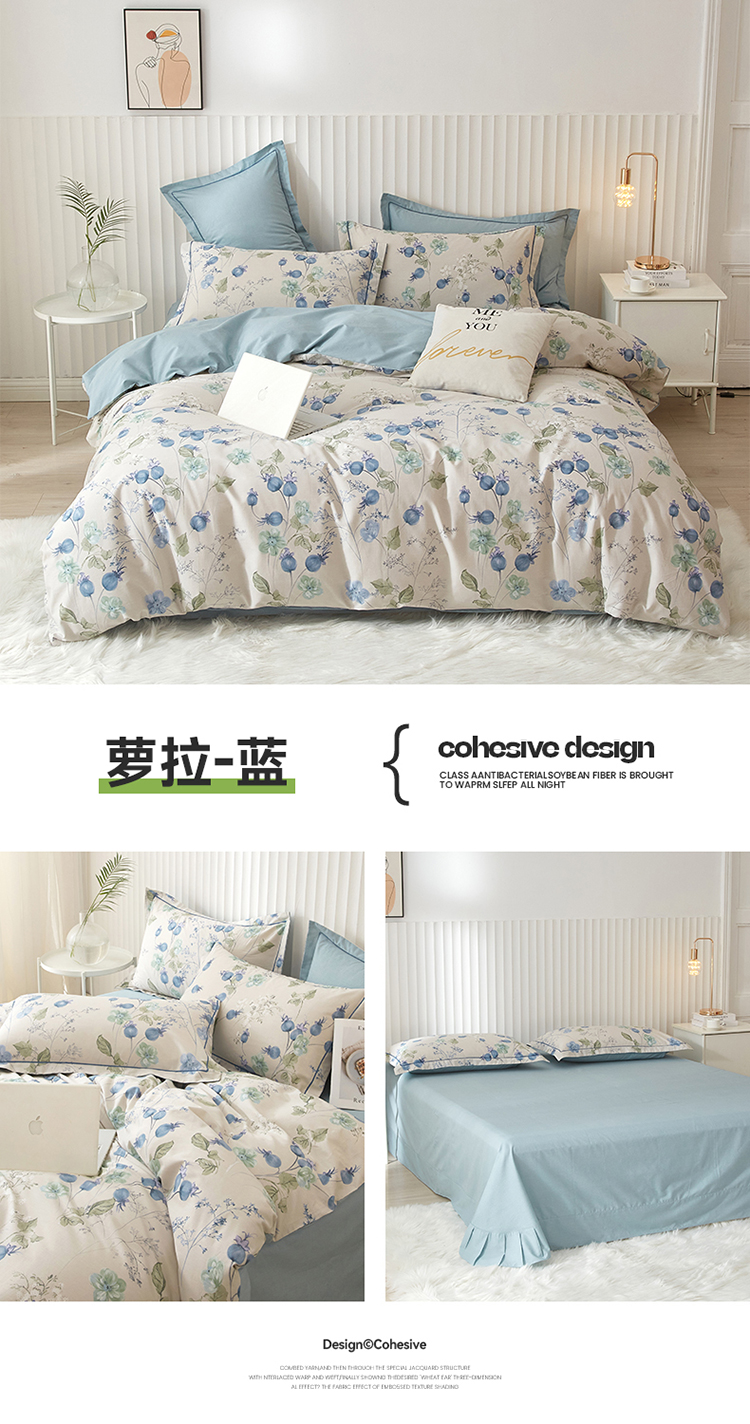 沐白家居 2023全棉13376全棉印花四件套 萝拉-蓝