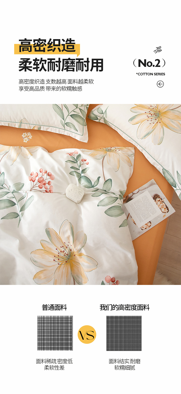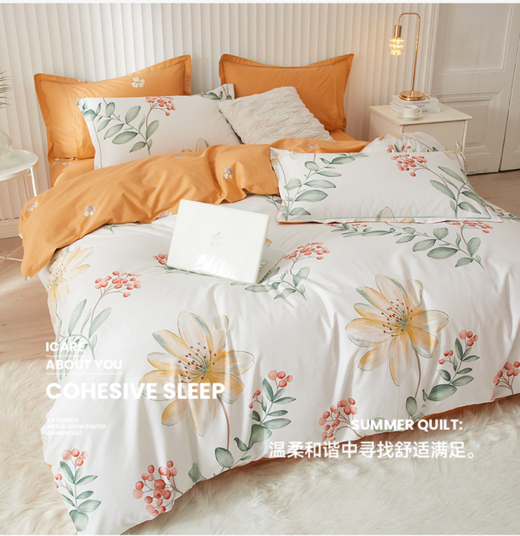 商品名称:沐白家居 2023全棉13376全棉印花四件套 恋曲-白