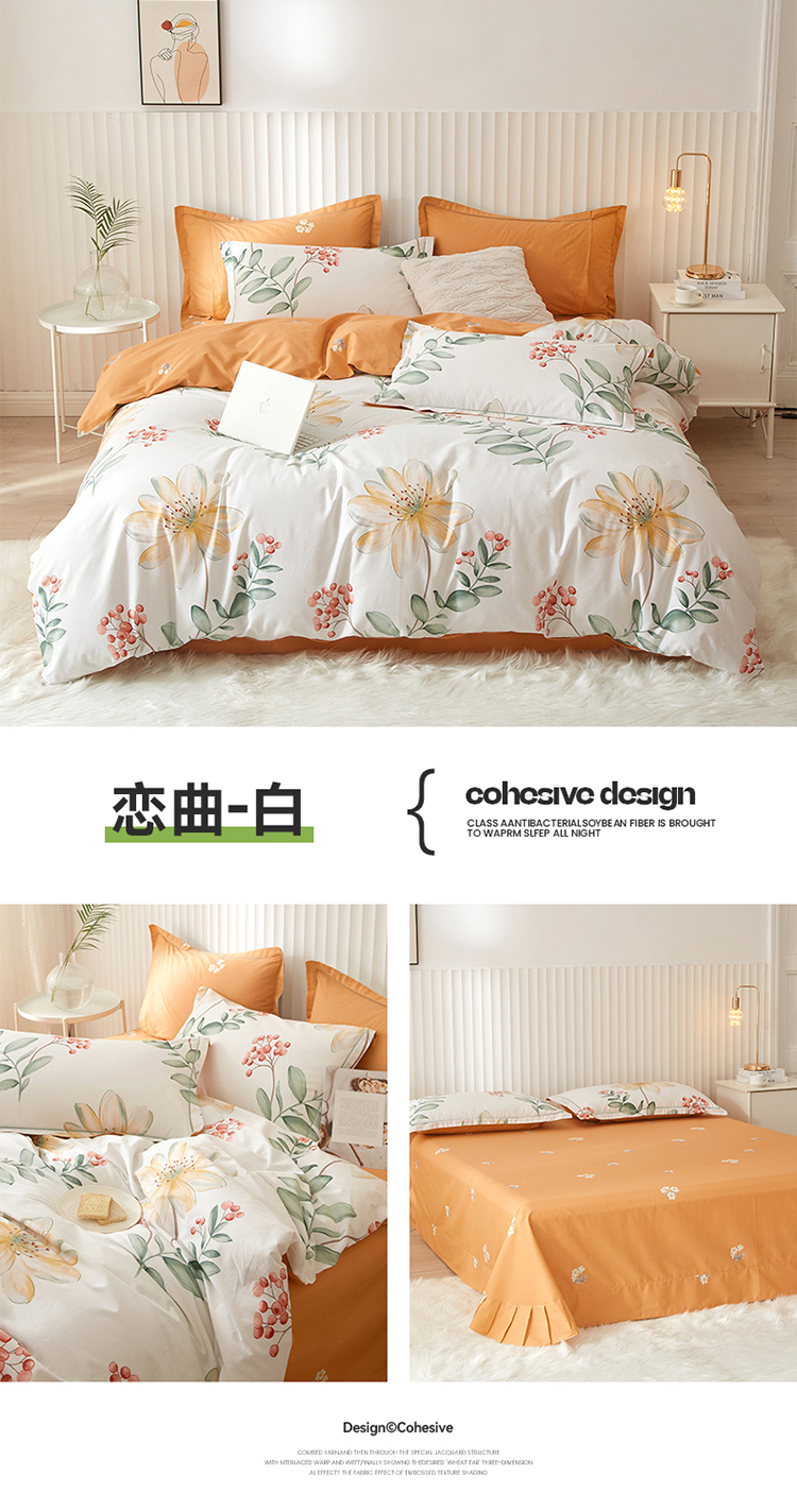 沐白家居 2023全棉13376全棉印花四件套 恋曲-白