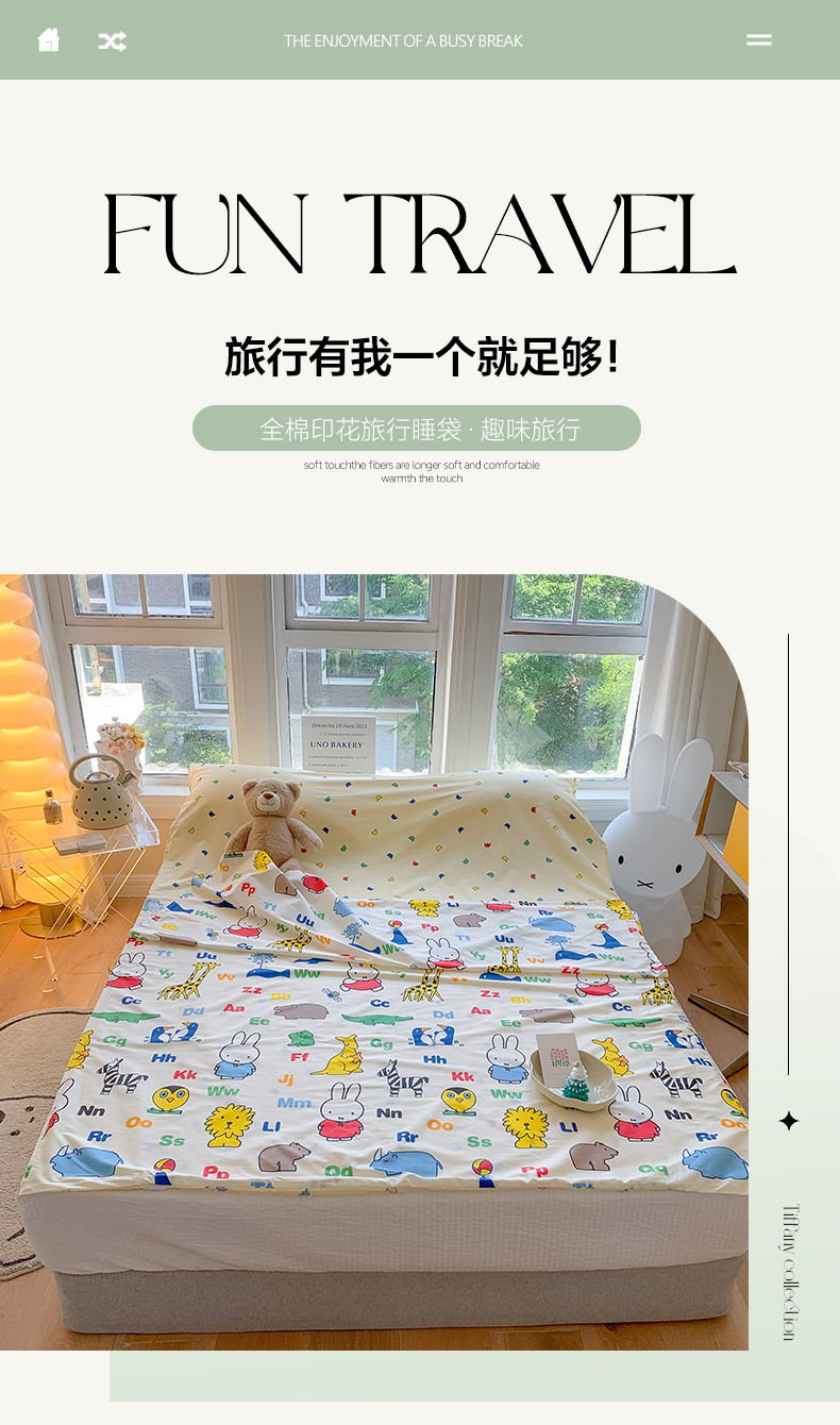 商品名称:澳萝拉2023新款全棉印花旅行睡袋 米菲动物园