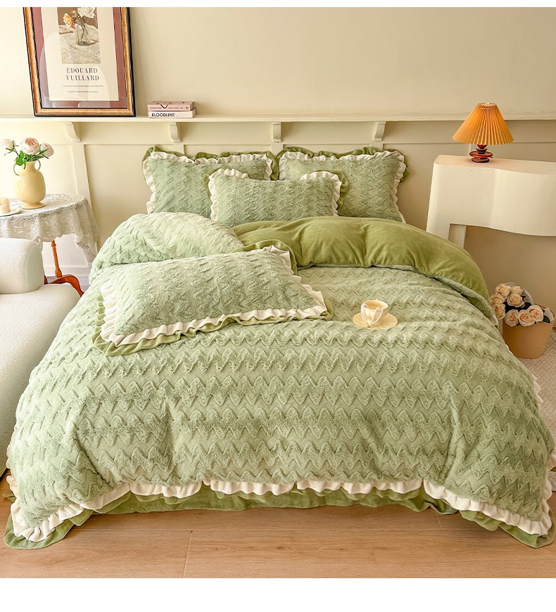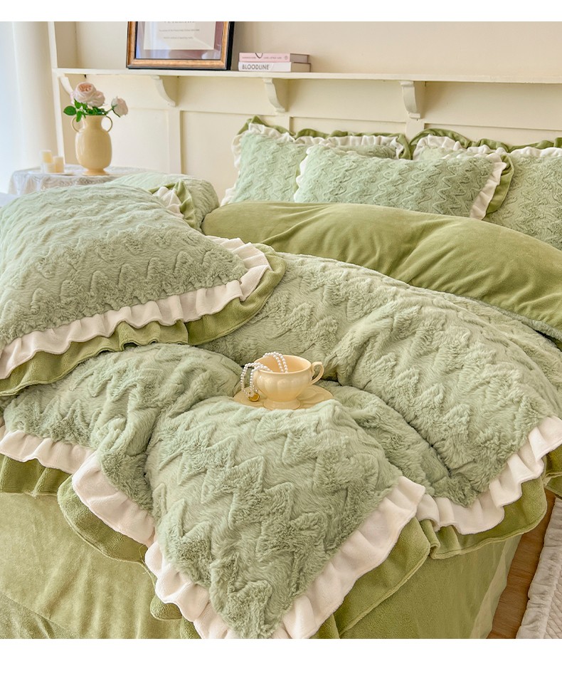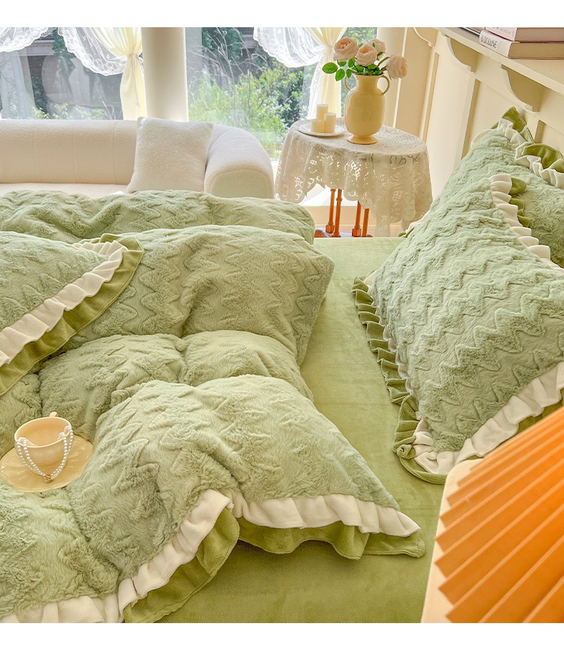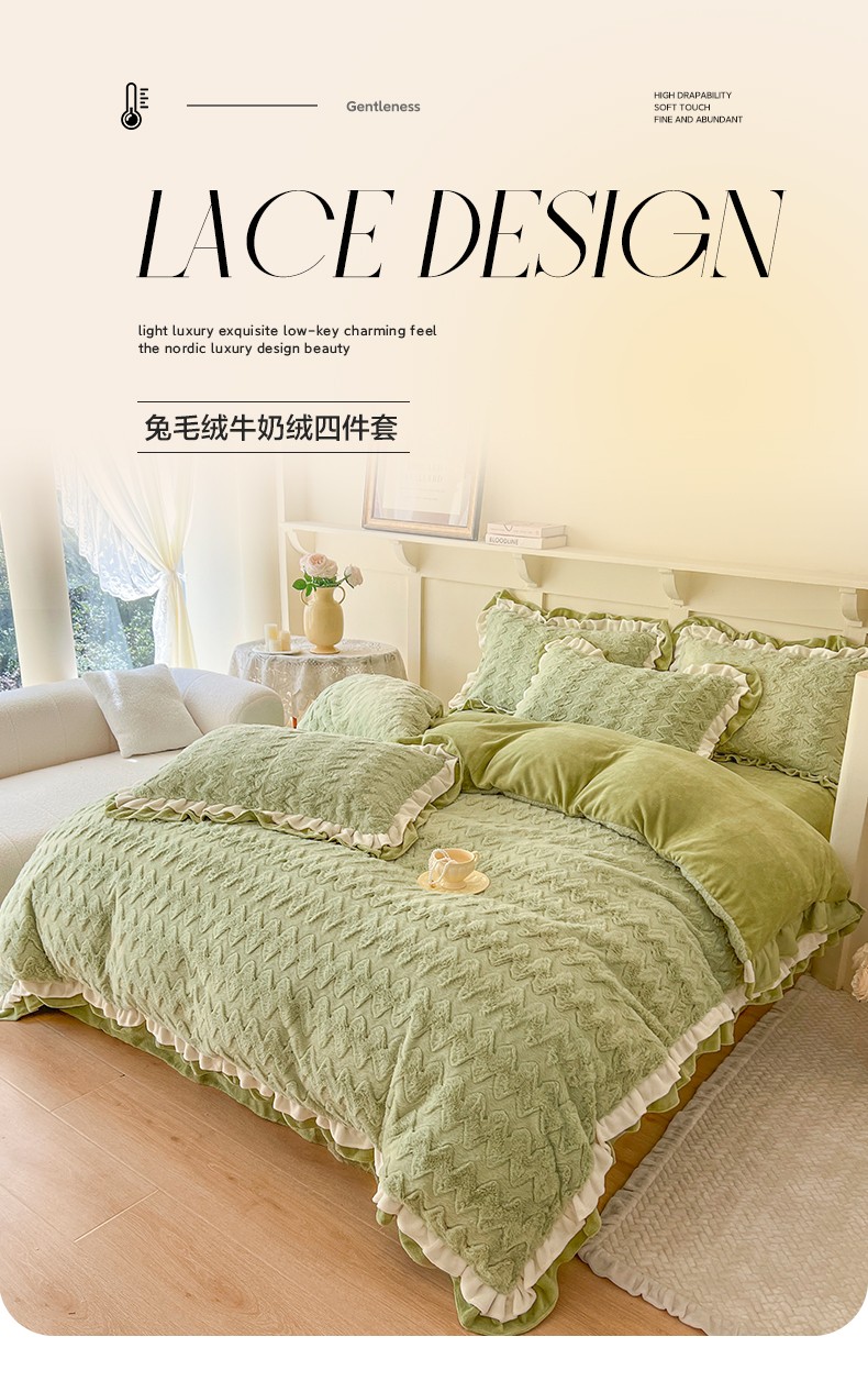 麒豆豆 2023新款A版兔毛绒B版素色牛奶绒四件套-织梦 织梦-果绿