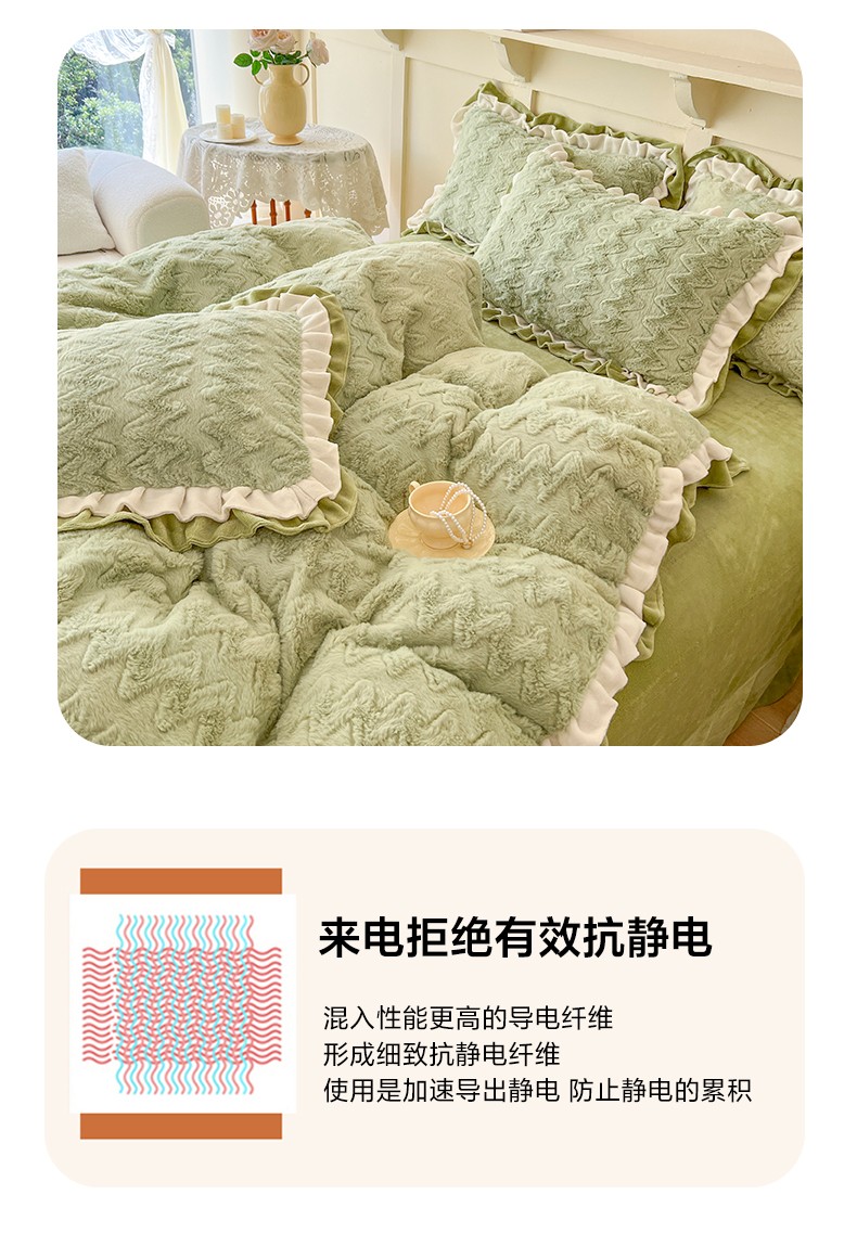 商品名称:麒豆豆 2023新款A版兔毛绒B版素色牛奶绒四件套-织梦 织梦-果绿