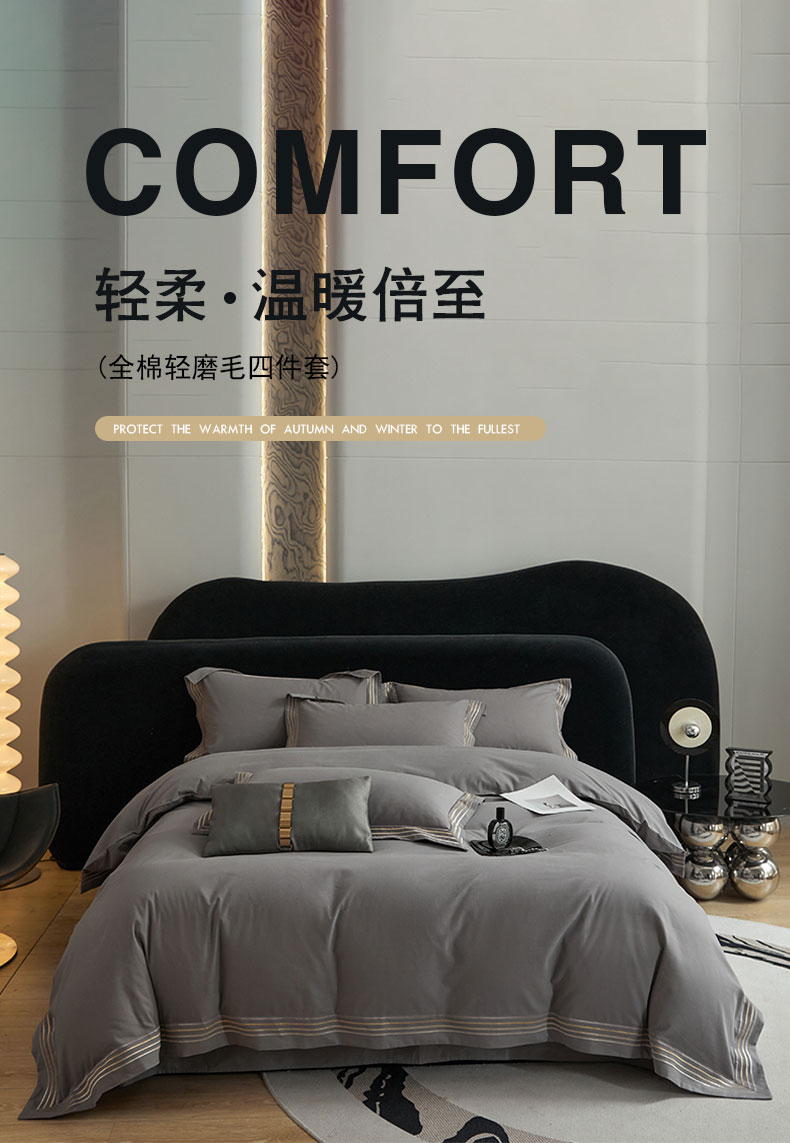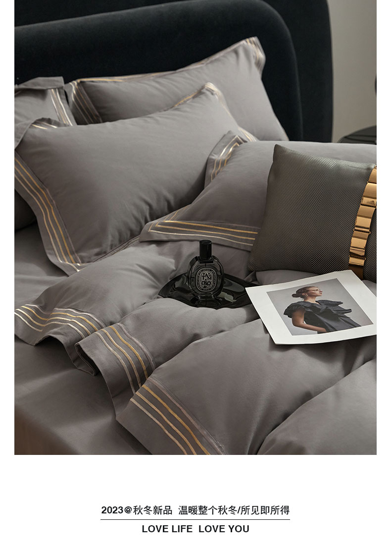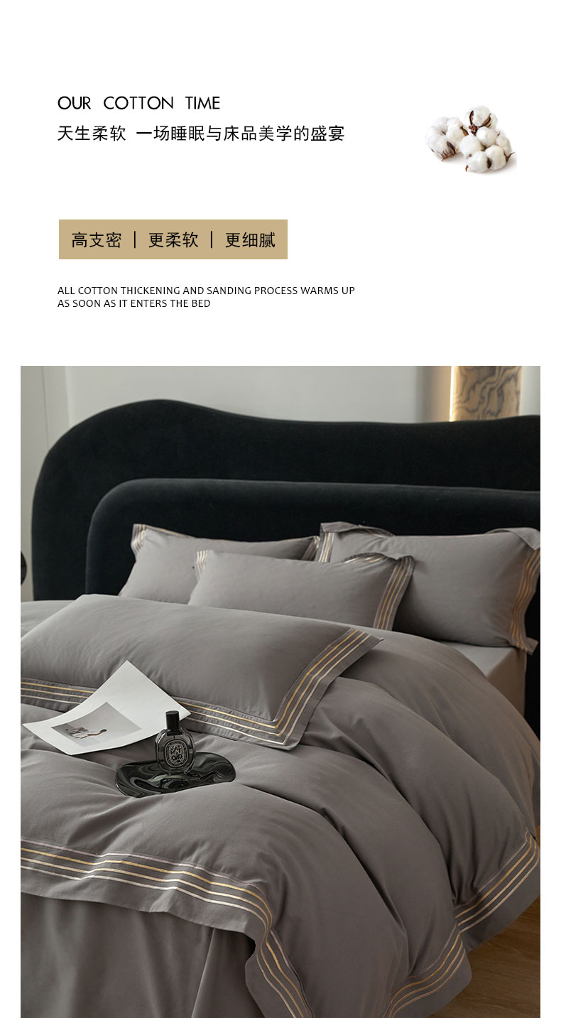 商品名称:安妮家居 2023新款全棉轻磨毛刺绣四件套-奥斯汀 高级灰