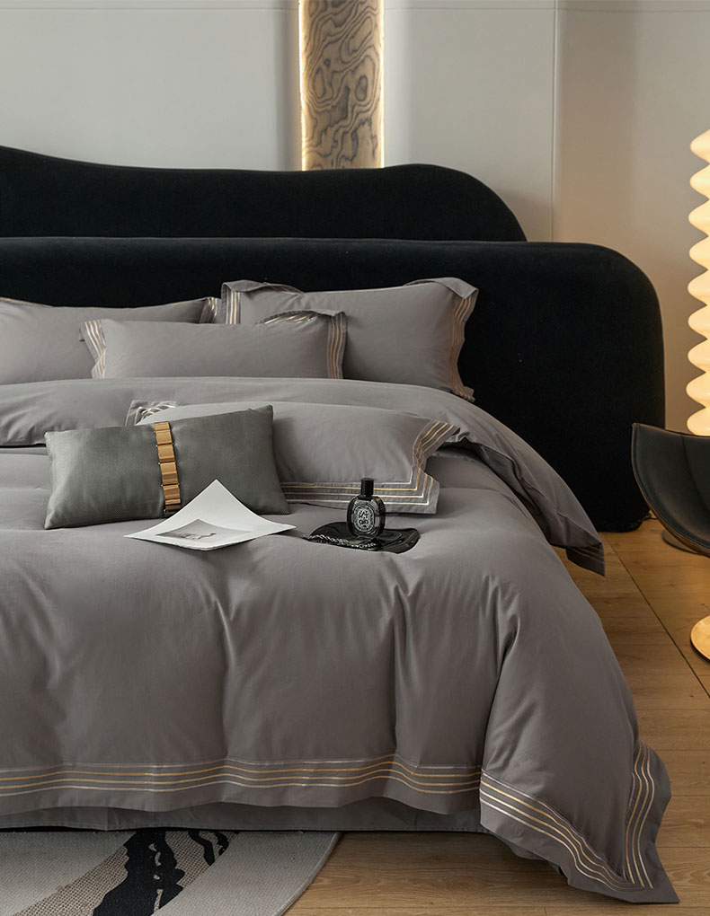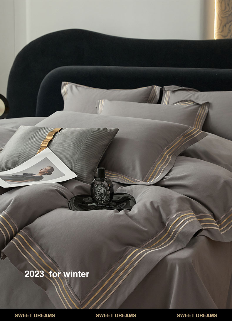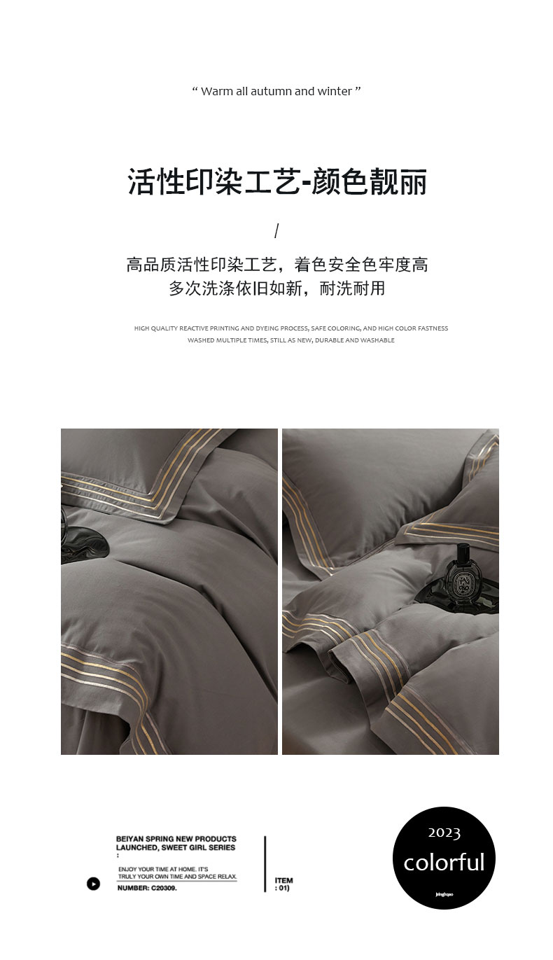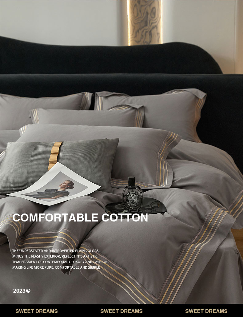 商品名称:安妮家居 2023新款全棉轻磨毛刺绣四件套-奥斯汀 高级灰