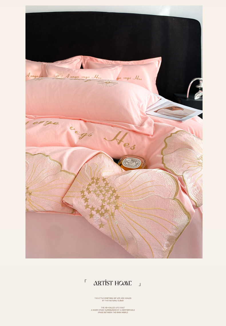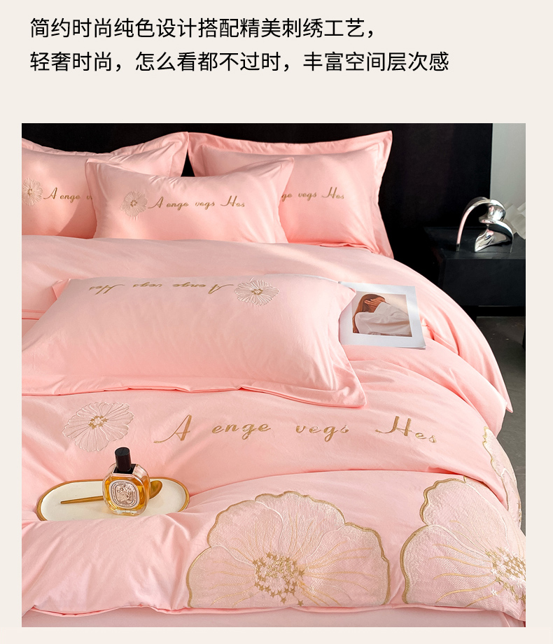 你好美丽 刺绣款200克牛奶绒四件套(含买家秀)花香四溢粉,花香四溢粉