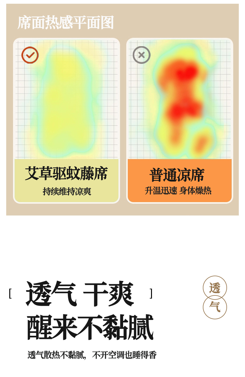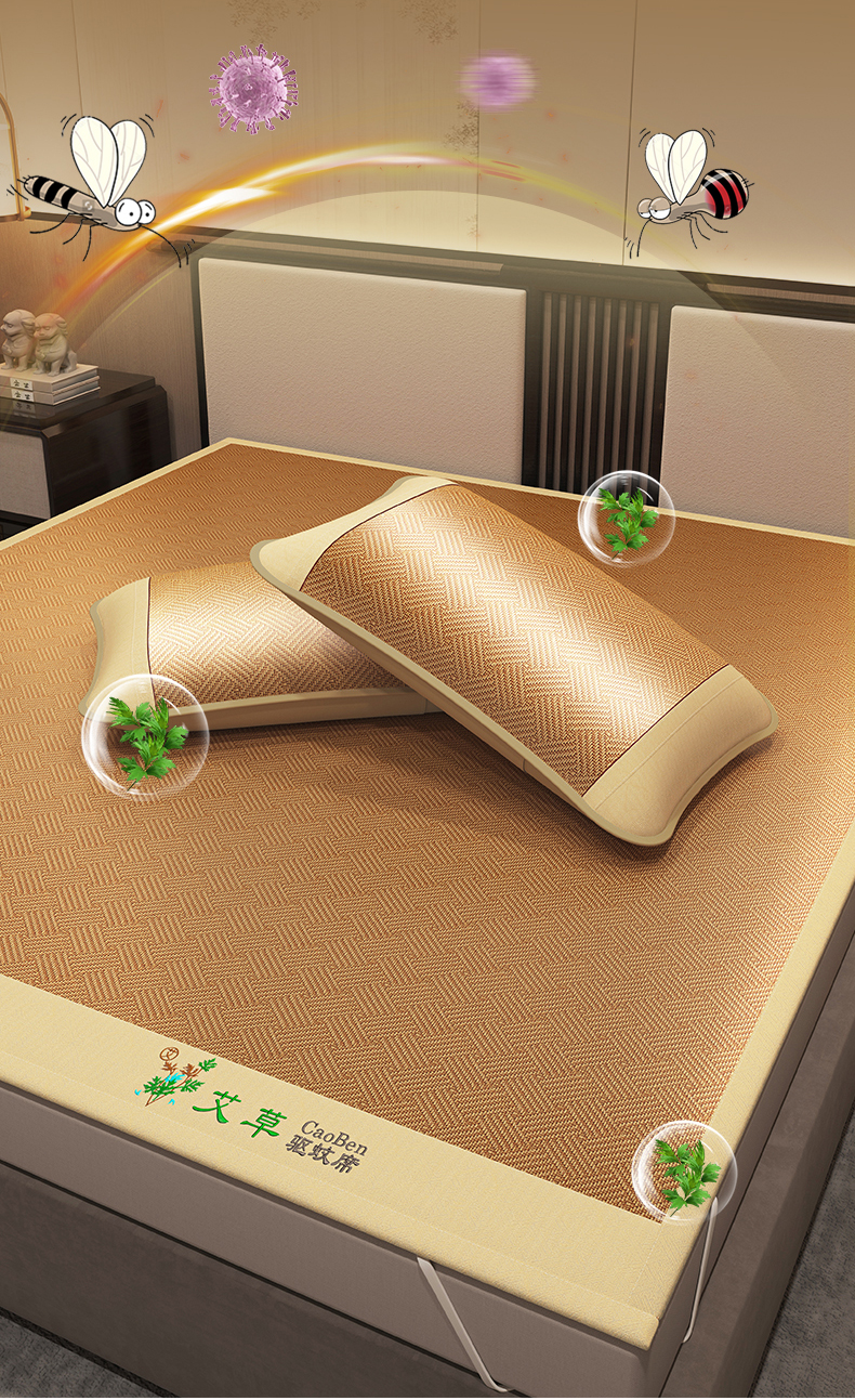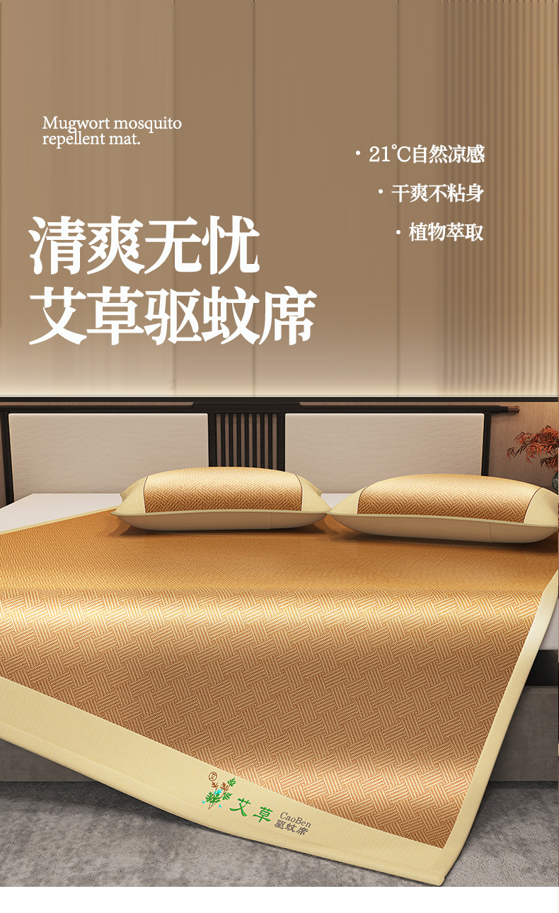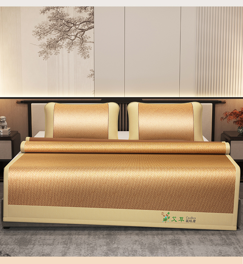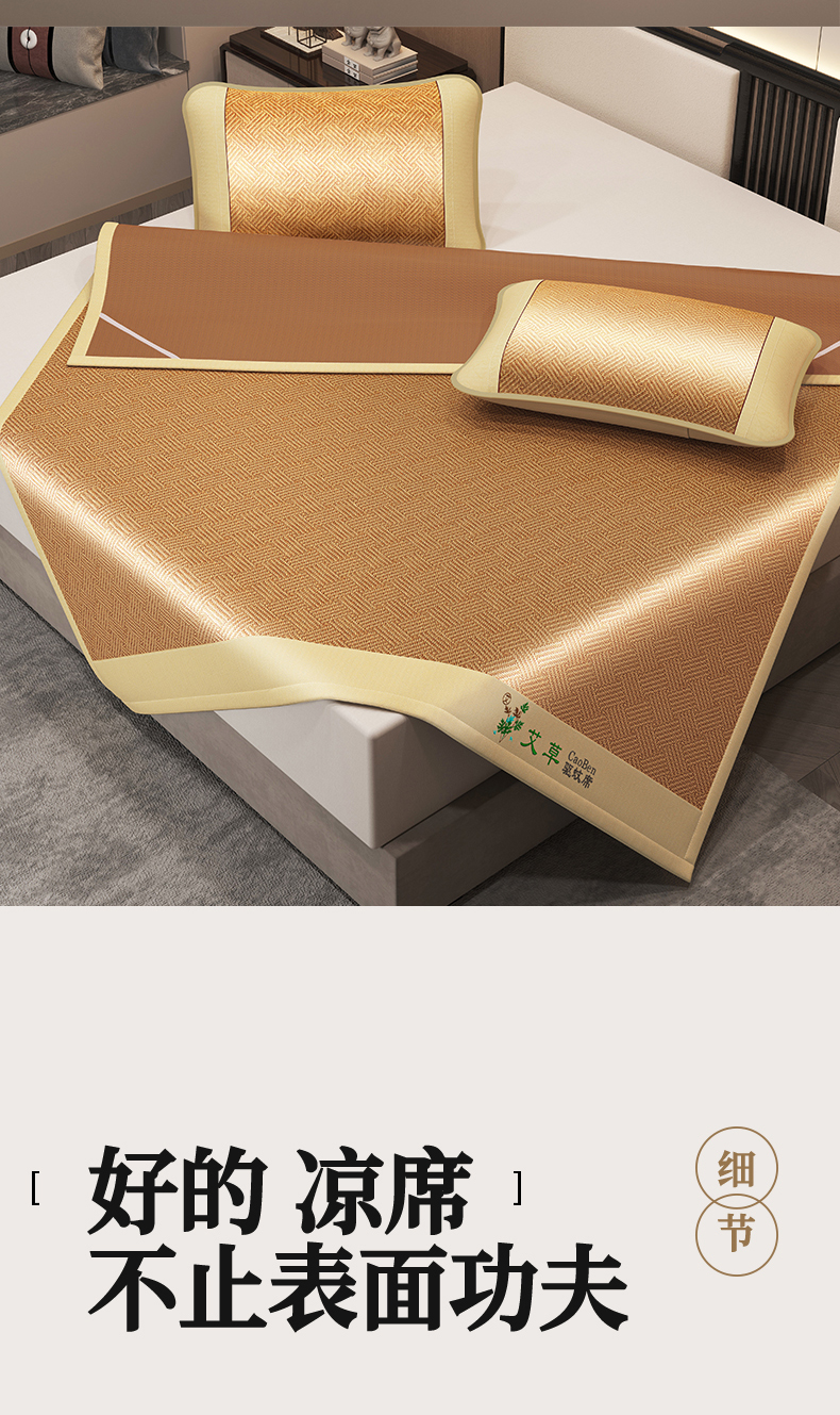 (总)席佬大 2025新款香薰艾草冰藤席凉席,北欧风,红叶绿,花朵-香槟,花开绿,花开玉,杏叶香槟