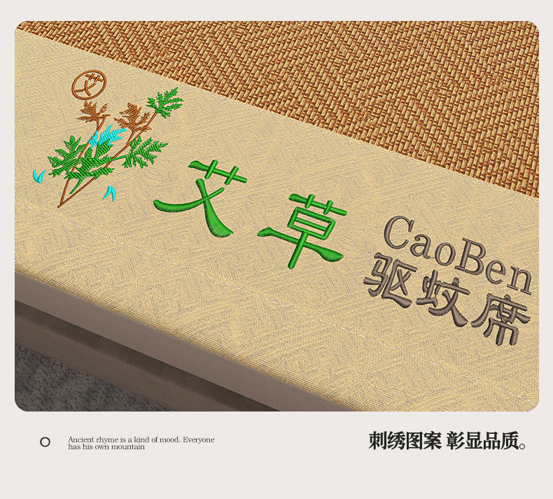 商品名称:席佬大 2025新款艾草单双面古藤宽边绣花冰丝席凉席 单面席-饼干花