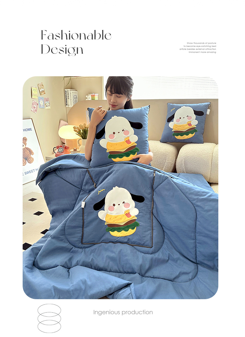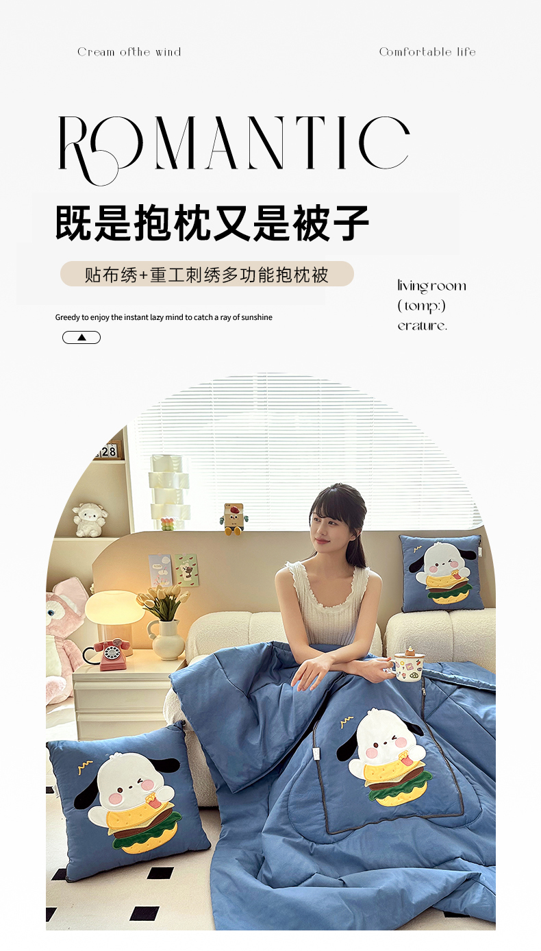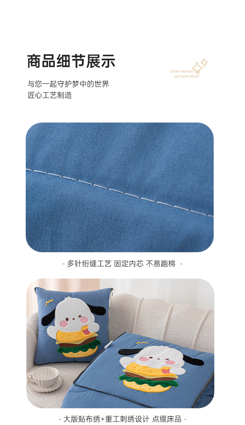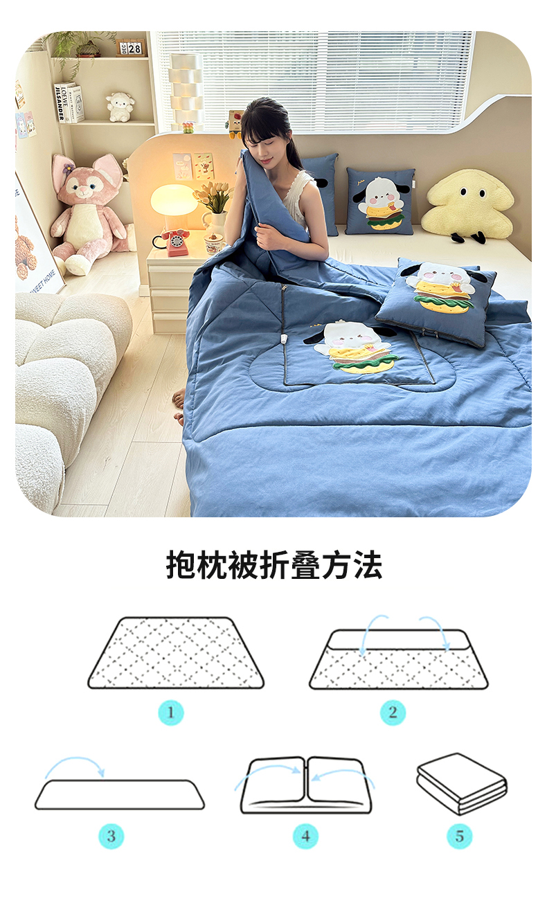 商品名称:铭宣家居 2024新款贴布绣+重工刺绣多功能抱枕被系列 汉堡狗狗 汉堡狗狗-湖蓝色
