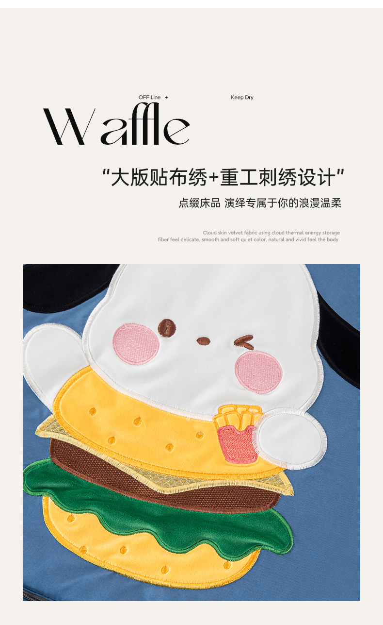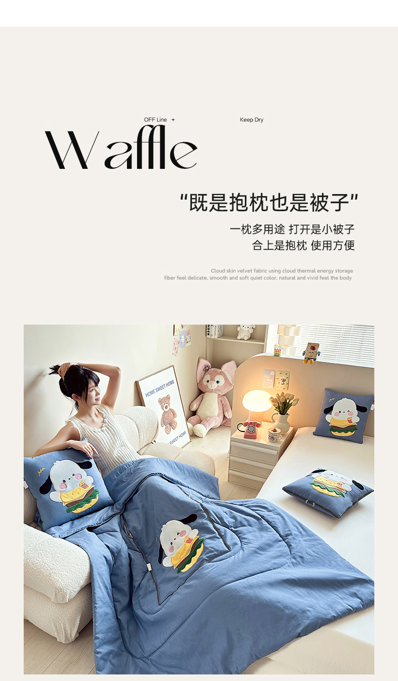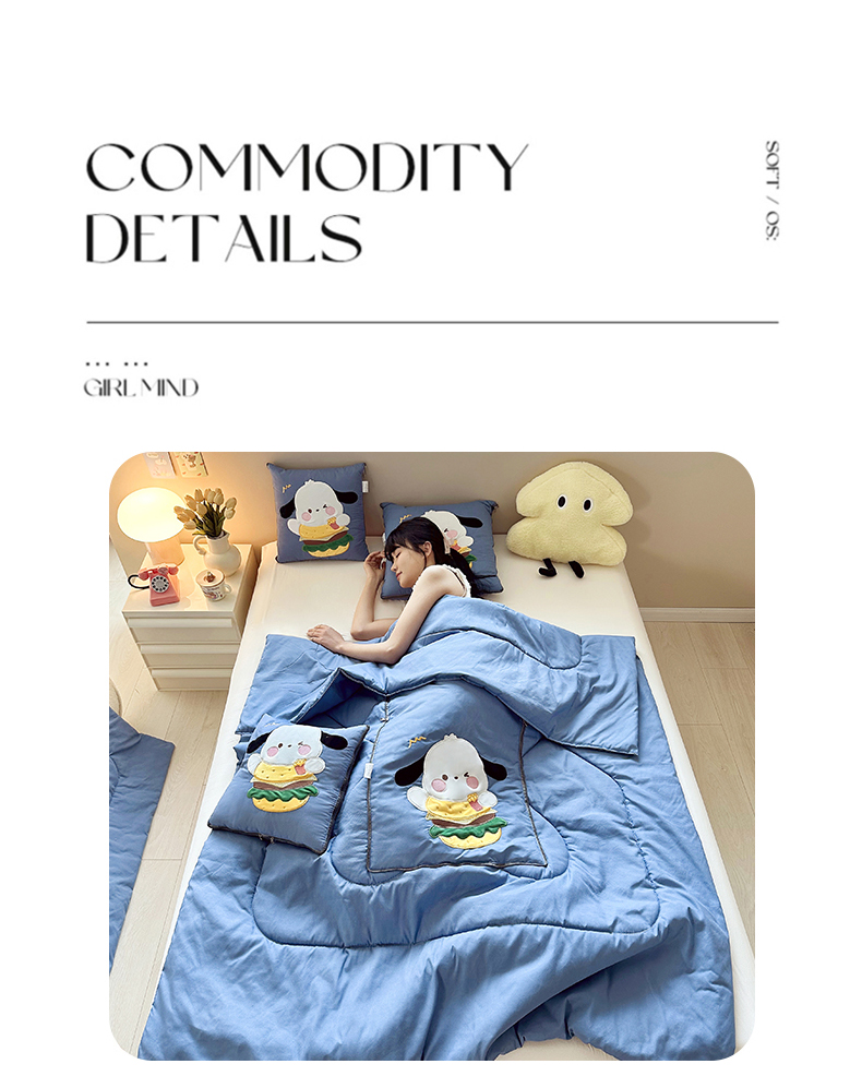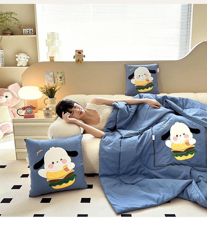 商品名称:铭宣家居 2024新款贴布绣+重工刺绣多功能抱枕被系列 汉堡狗狗 汉堡狗狗-湖蓝色