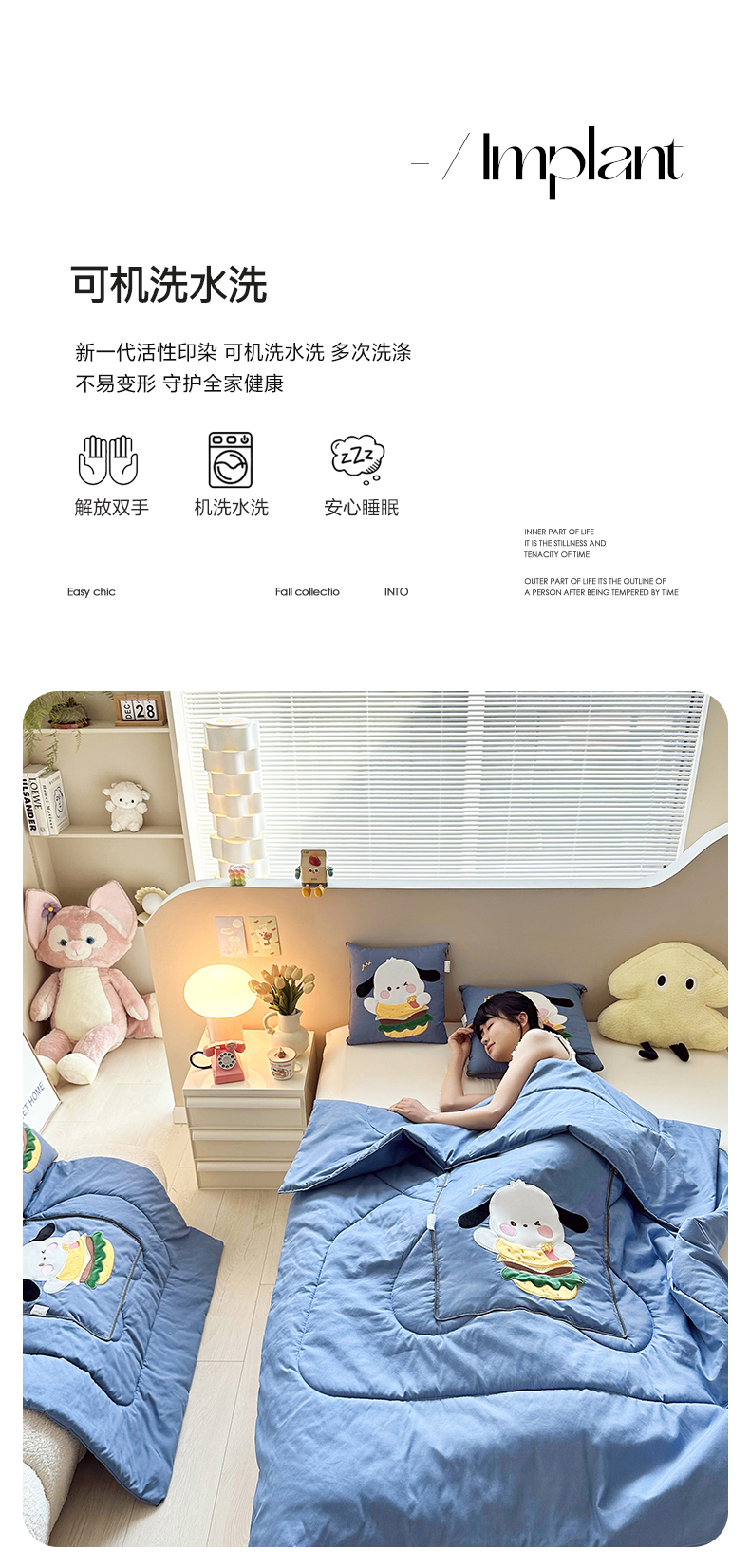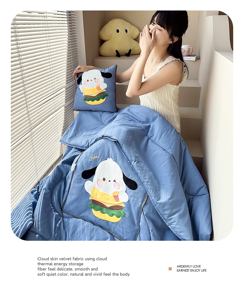 (总)铭宣家居 2024新款正版三丽鸥授权加厚AB版婴儿绒和北极绒贴布绣刺绣抱枕被,大耳狗,酷洛米,美乐蒂