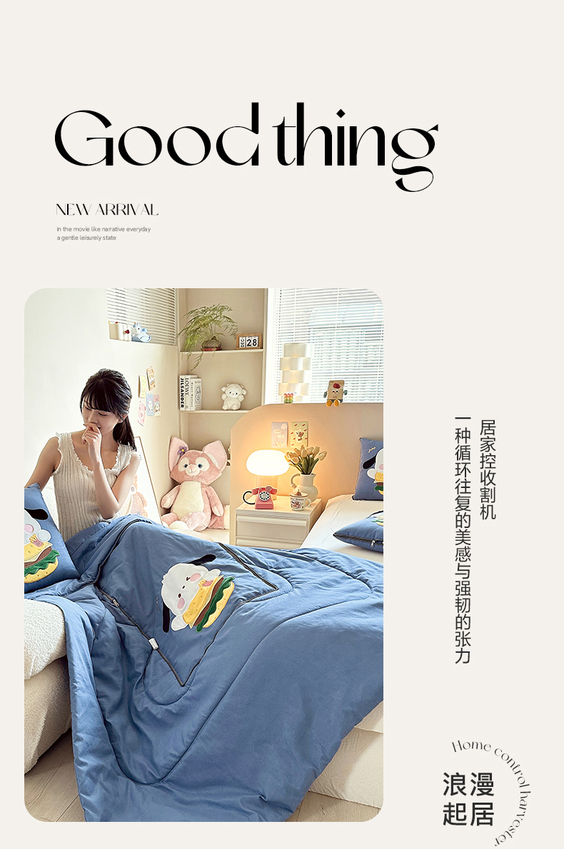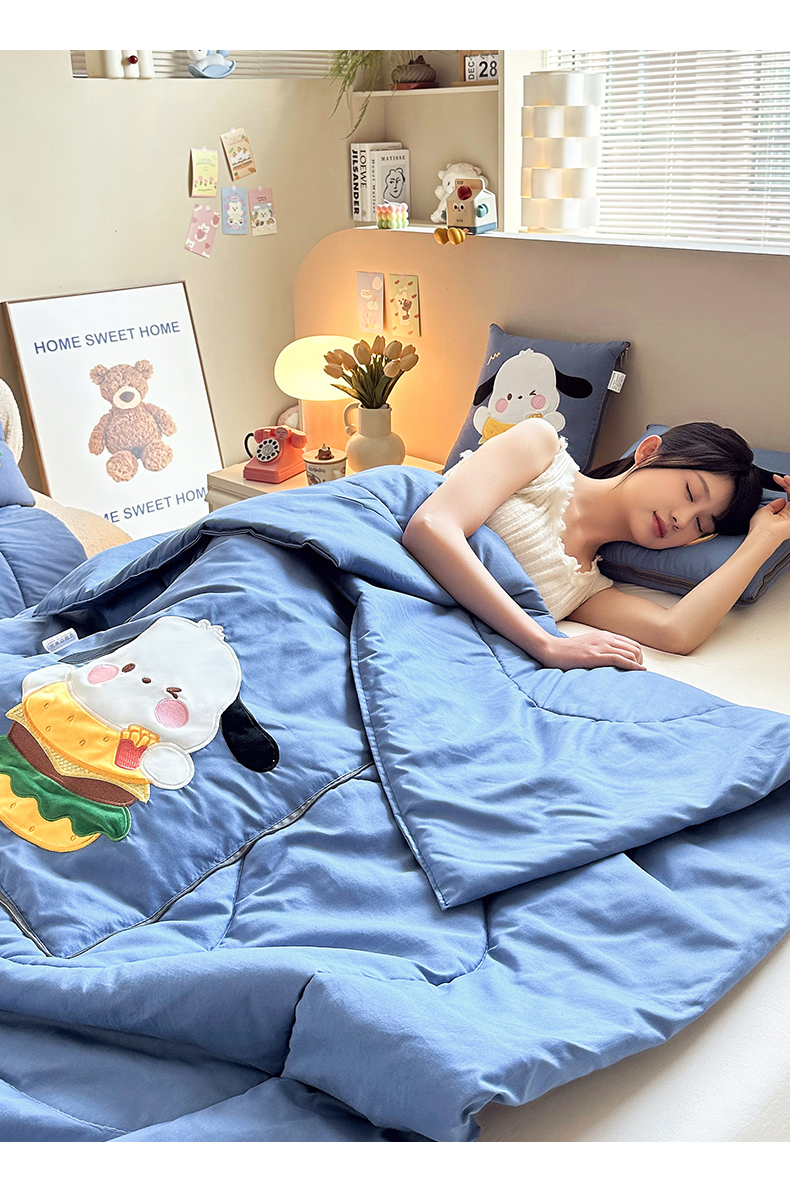 铭宣家居 2024新款贴布绣+重工刺绣多功能抱枕被系列 汉堡狗狗 汉堡狗狗-湖蓝色
