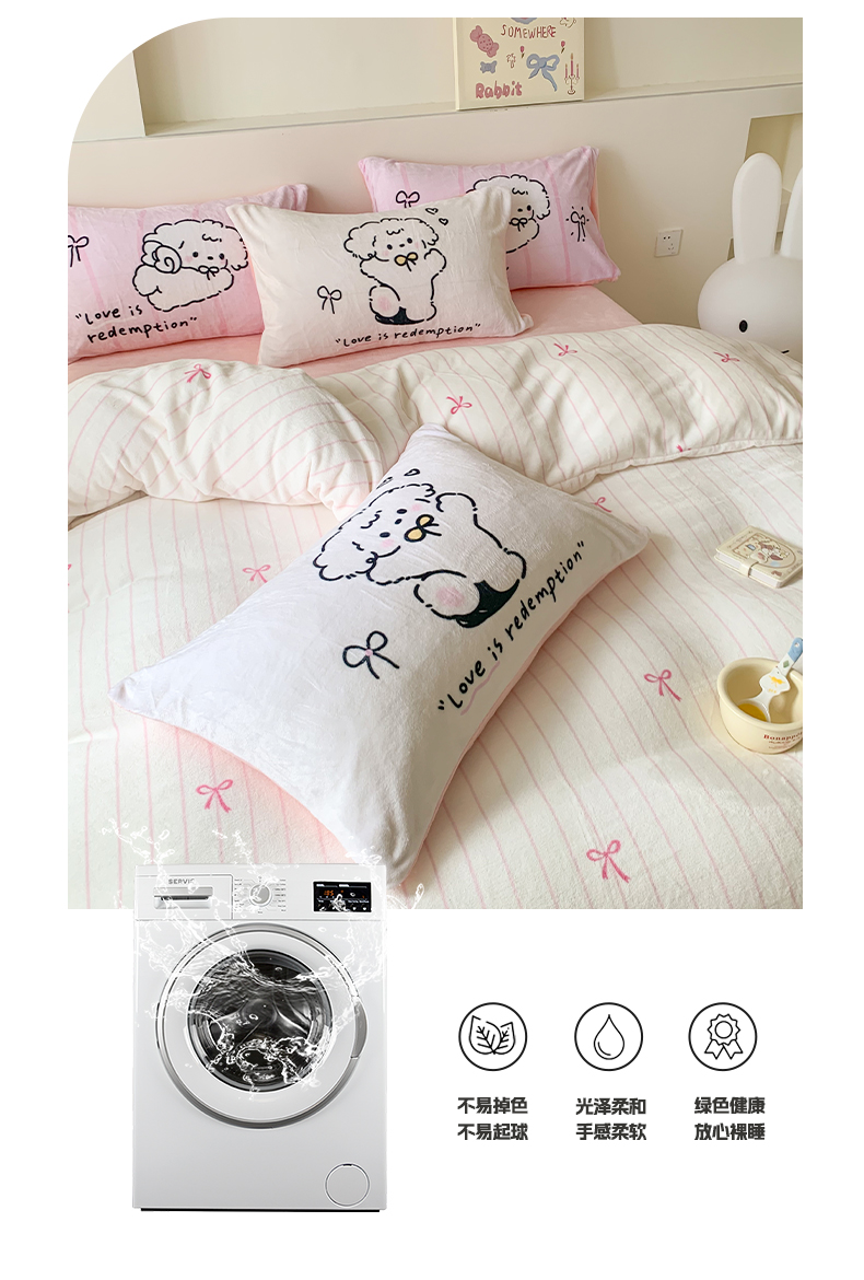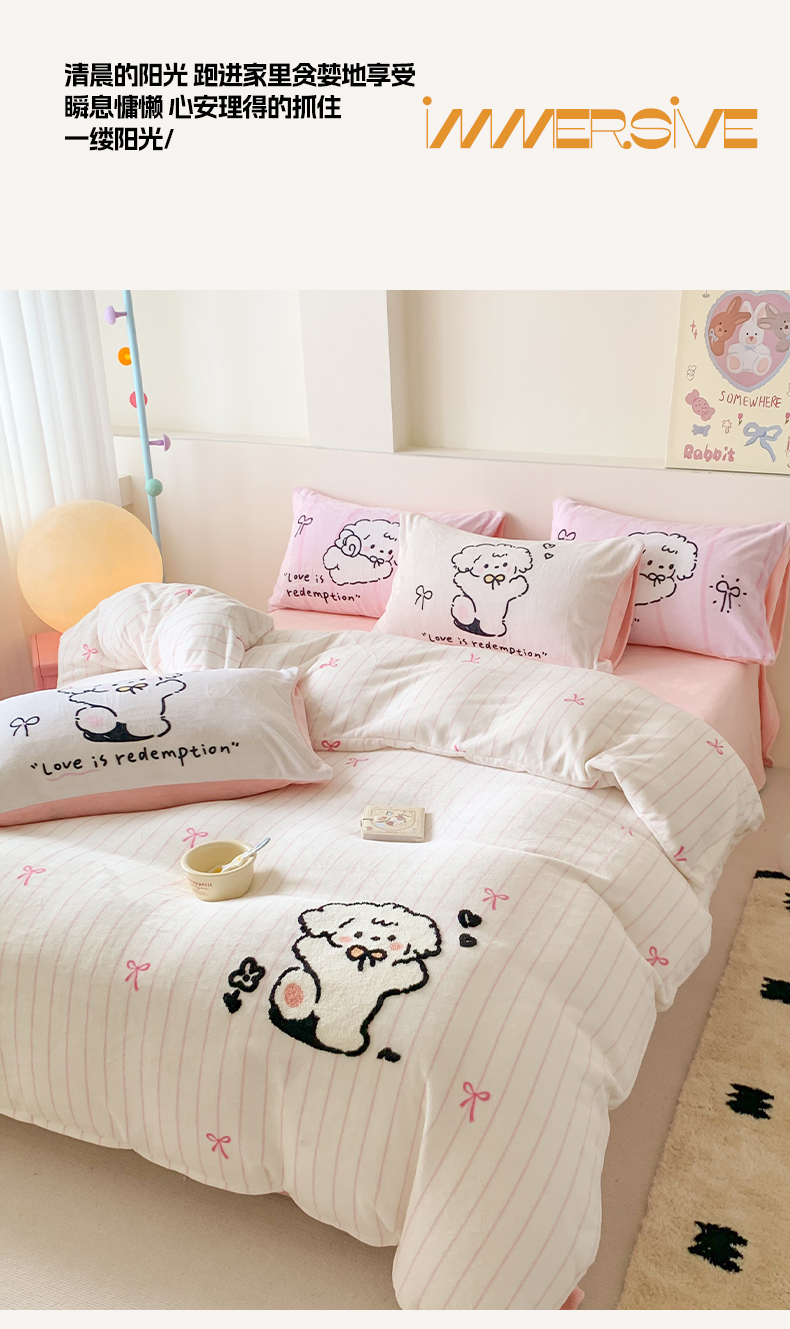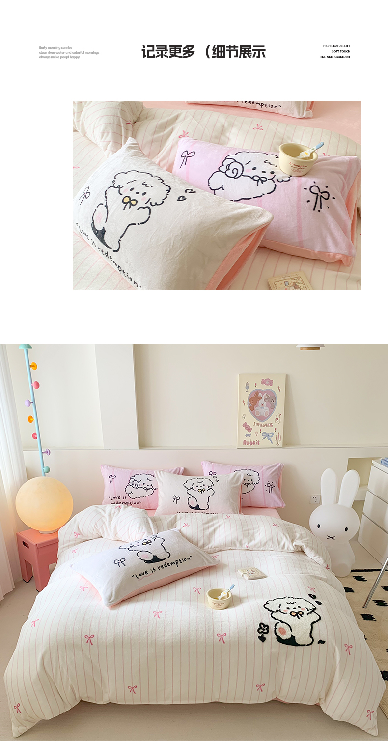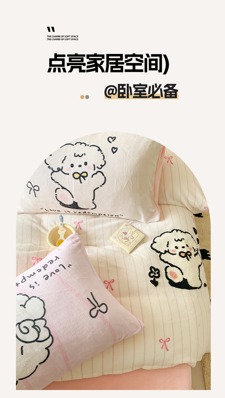 当前位置: 91家纺网 > 商品网购 > 床品套件 > 四件套 > 牛奶绒四件套 > 澳萝拉 2024新款牛奶绒毛巾绣四件套 欢乐小狗