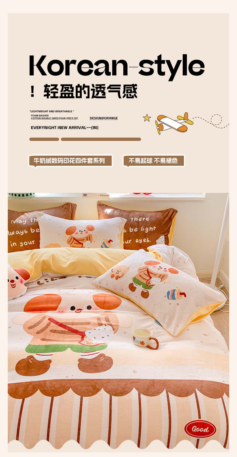当前位置: 91家纺网 > 商品网购 > 床品套件 > 四件套 > 牛奶绒四件套 > 澳萝拉 2024新款牛奶绒数码印花四件套 焦糖冰淇淋