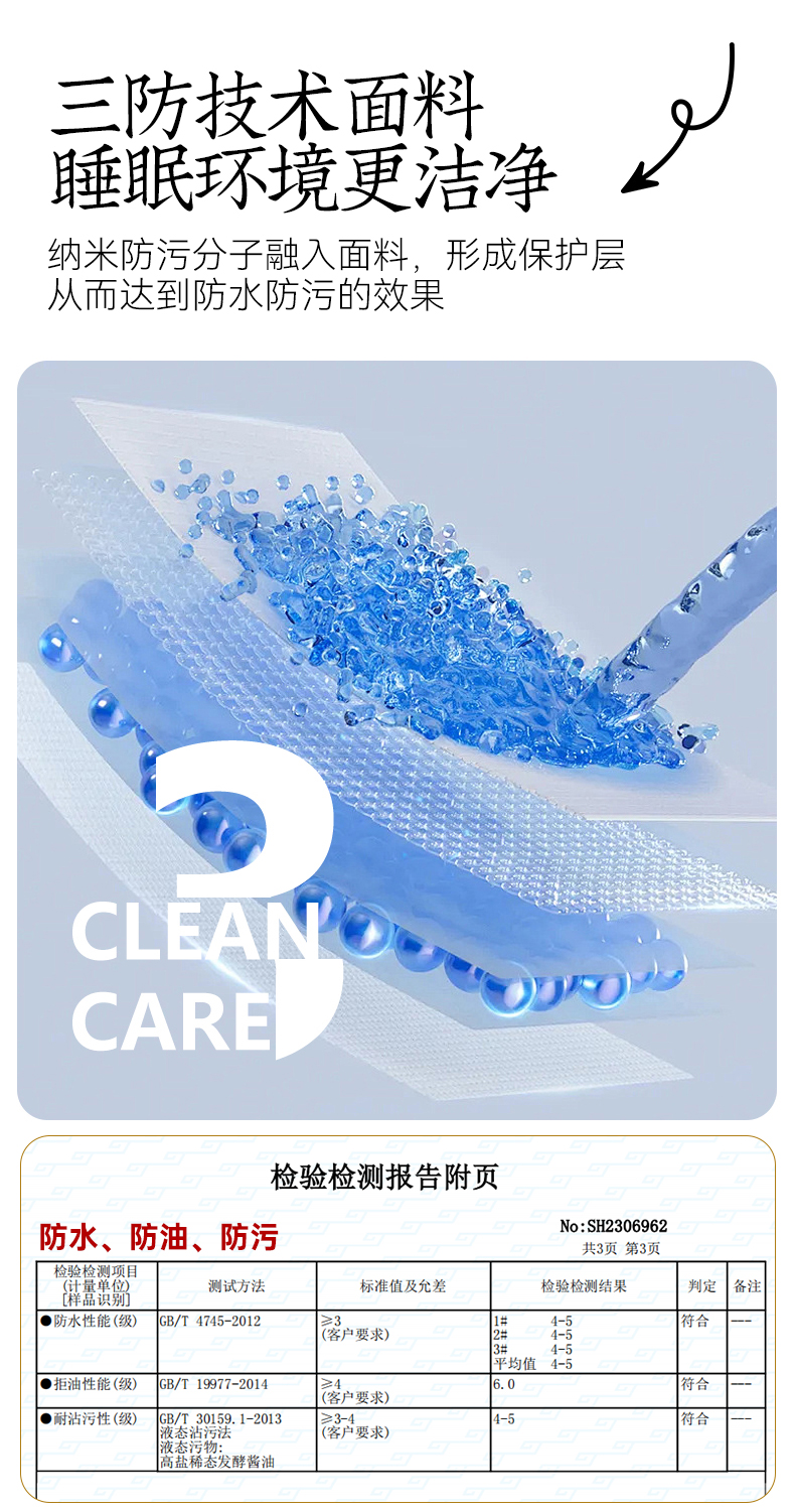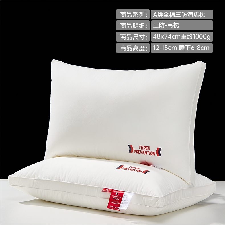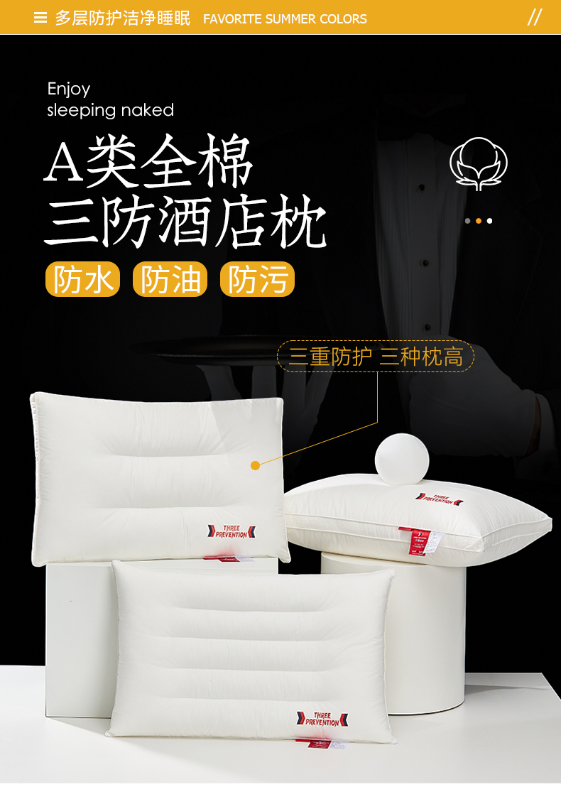 卖点: A类全棉三防面料:防水、防油、防污 A类全棉三防酒店枕