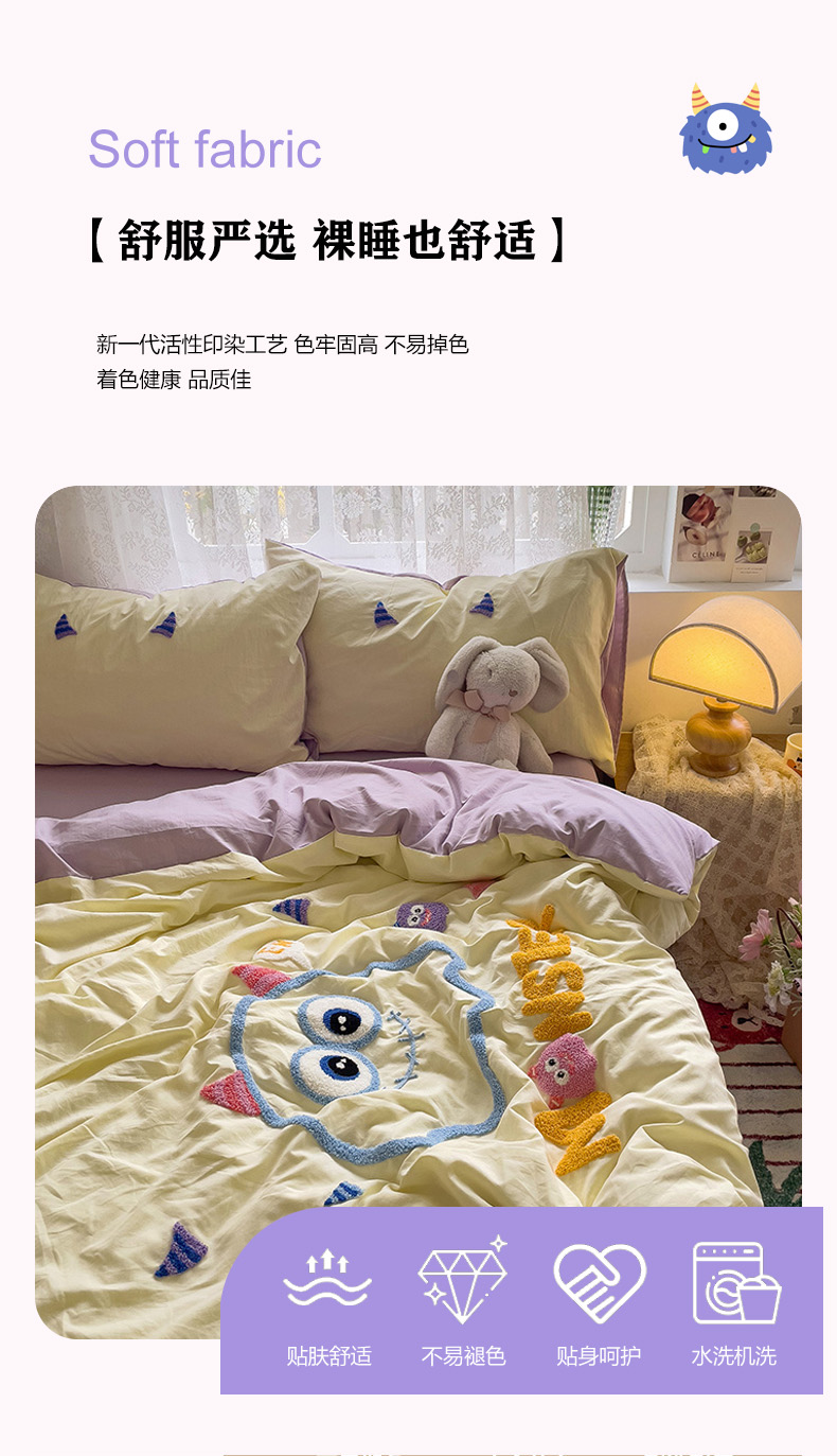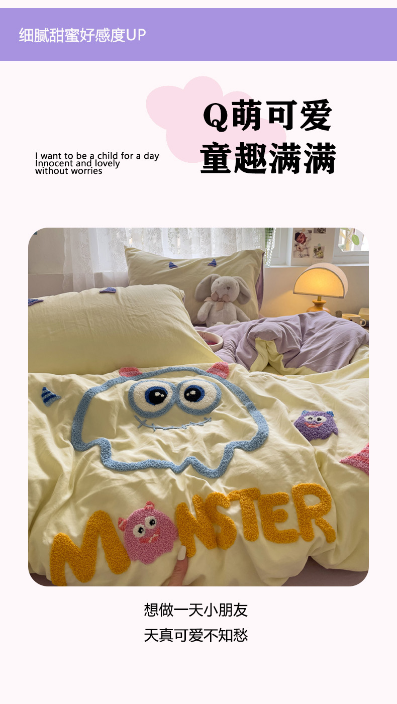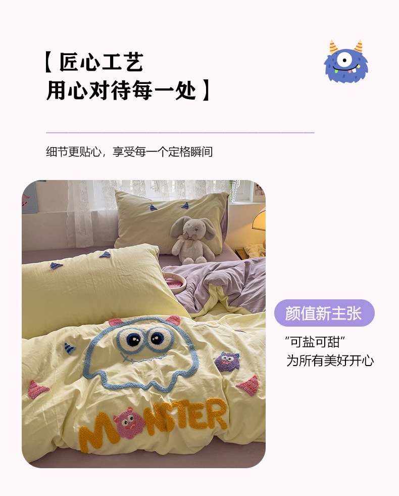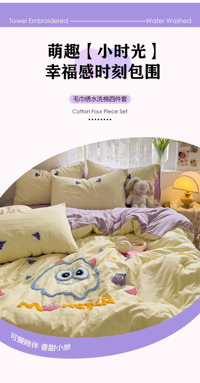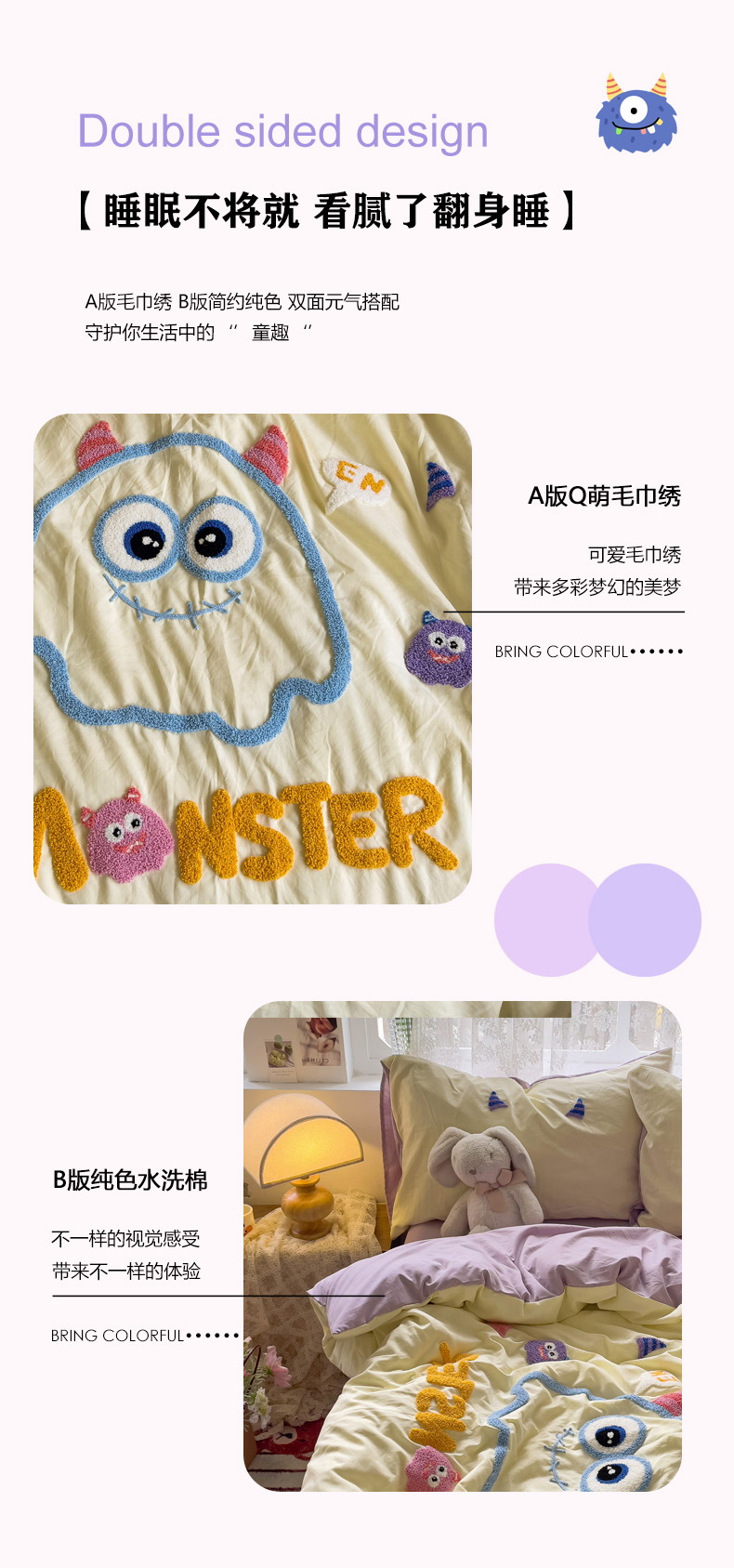 当前位置: 91家纺网 > 商品网购 > 床品套件 > 四件套 > 毛巾绣四件套 > 曼谷家纺 2025新款软糯毛巾绣水洗棉四件套-【买家秀联系微信】专属版权,质检报告 怪兽-芝士紫