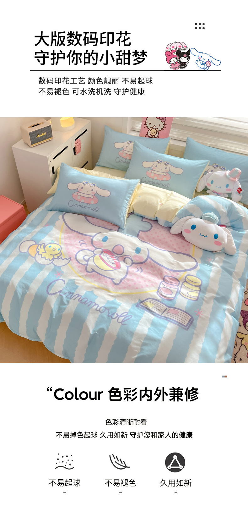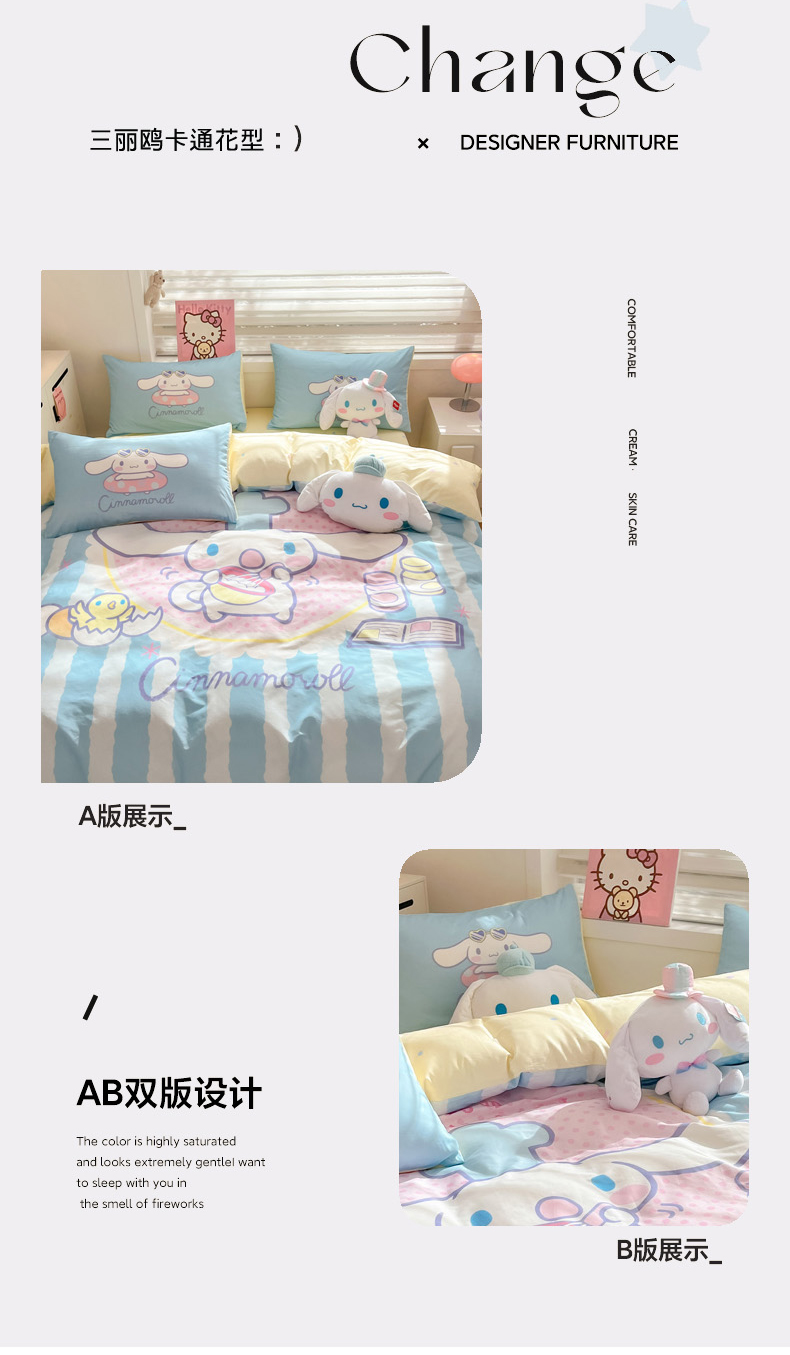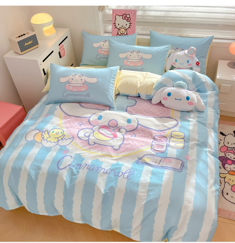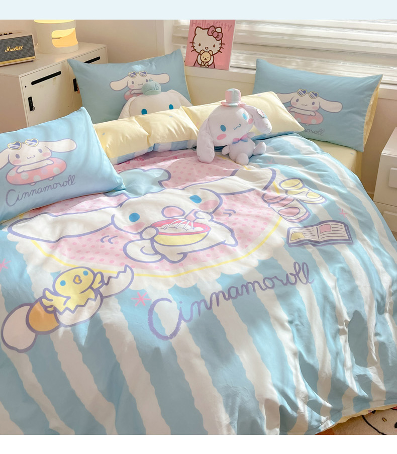当前位置: 91家纺网 > 商品网购 > 床品套件 > 四件套 > 全棉普通四件套 > 暮思家居 2025新款正版授权三丽鸥大阪全棉数码印花纯棉四件套(第三批) 大版-竖条大耳狗