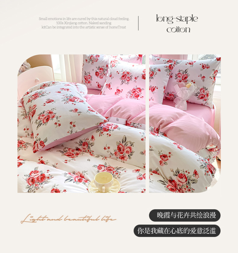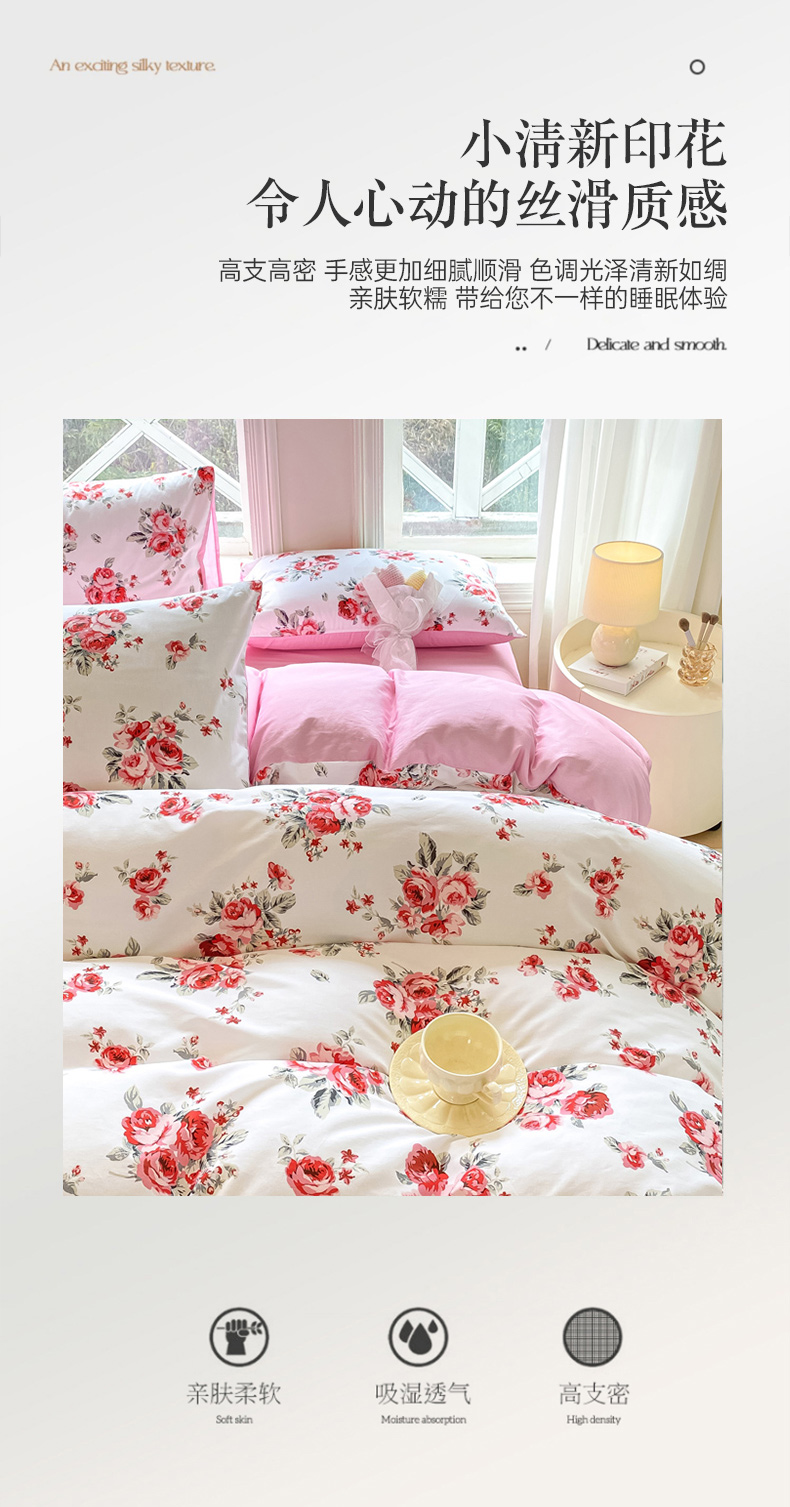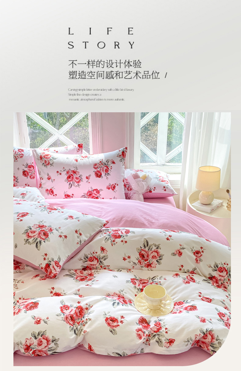 商品名称:念家居 2025新款直播爆款三件套印花小清新13070全棉四件套 如花似月