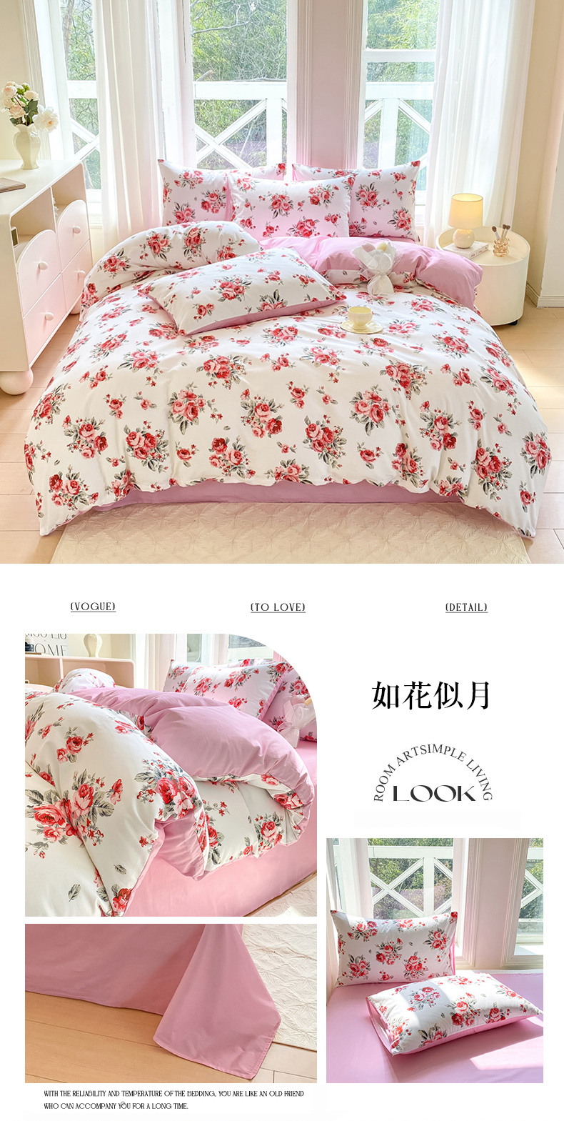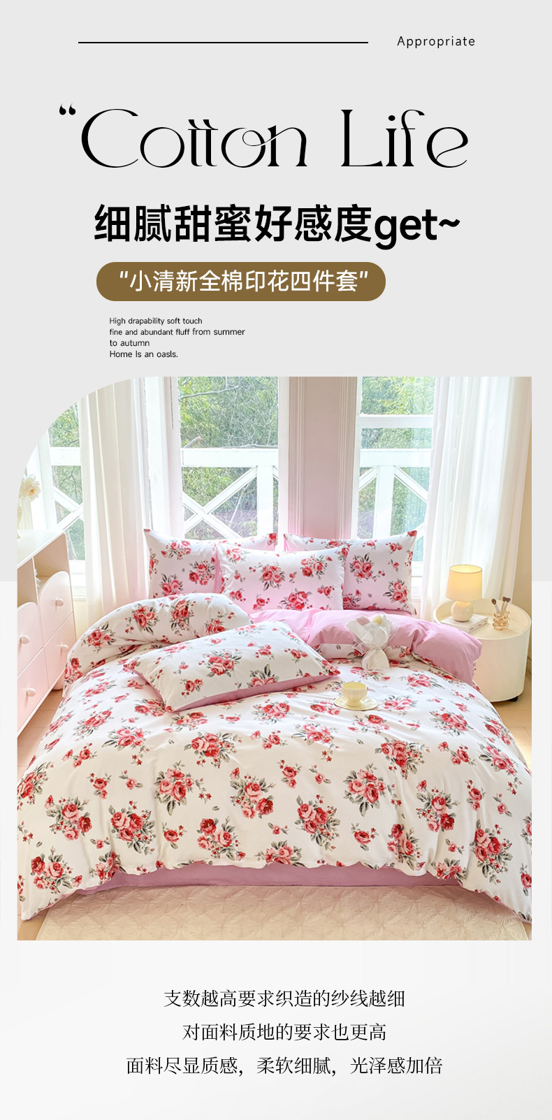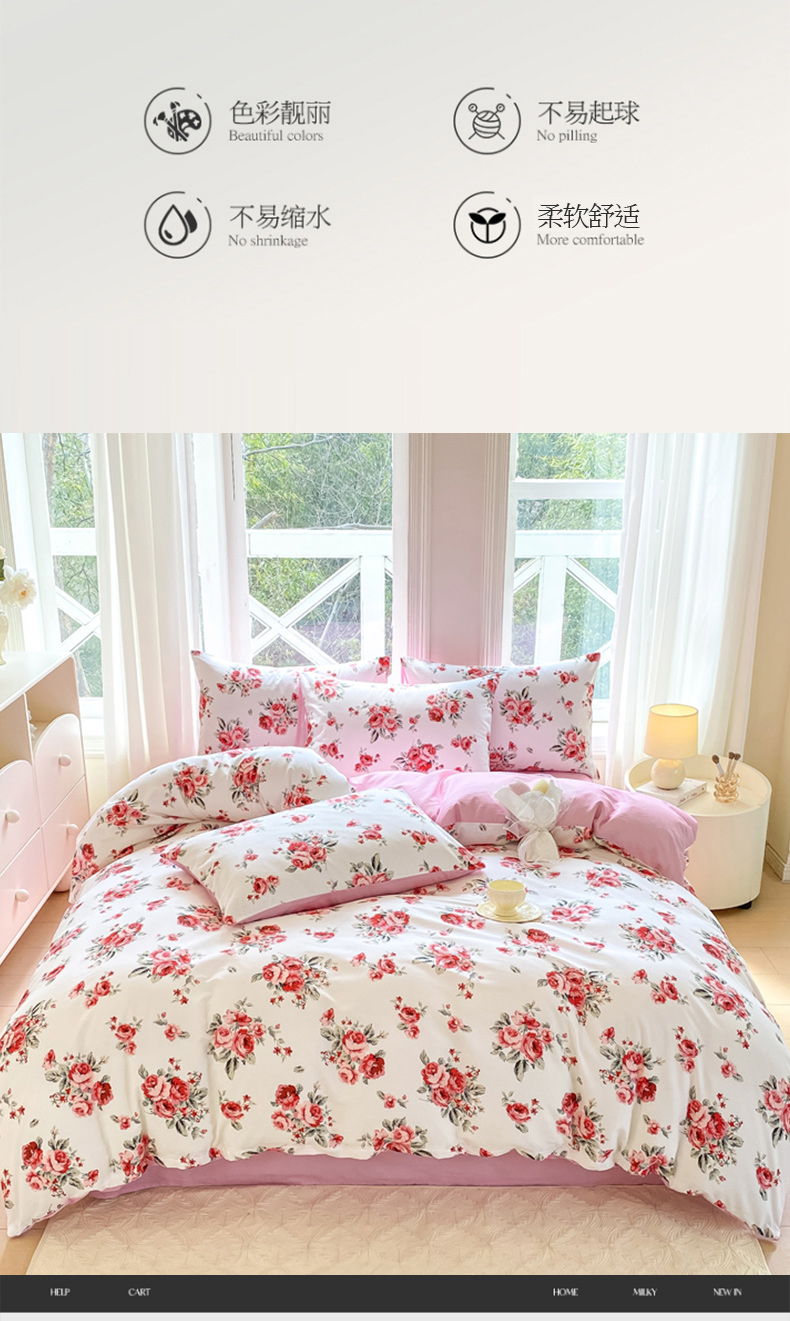 商品名称:念家居 2025新款直播爆款三件套印花小清新13070全棉四件套 如花似月