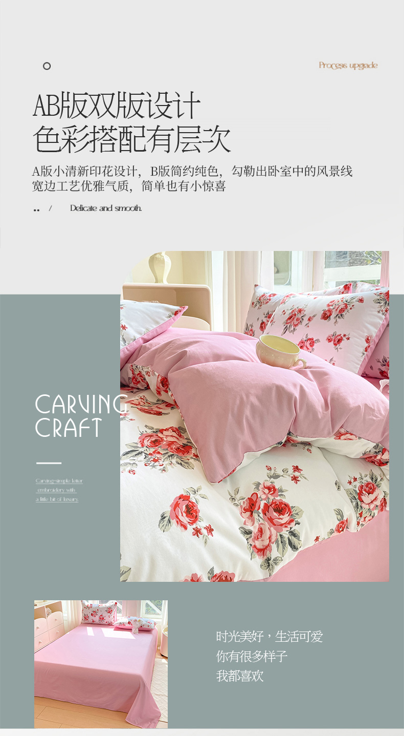 念家居 2025新款直播爆款三件套印花小清新13070全棉四件套 如花似月