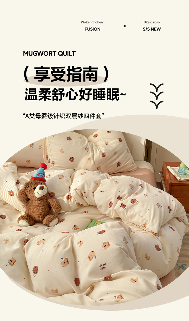 当前位置: 91家纺网 > 商品网购 > 床品套件 > 四件套 > 针织棉四件套 > 冕悠家纺 2025新款热款A类高克重针织双层纱四件套系列 (提供买家秀) 圆饼奶酪