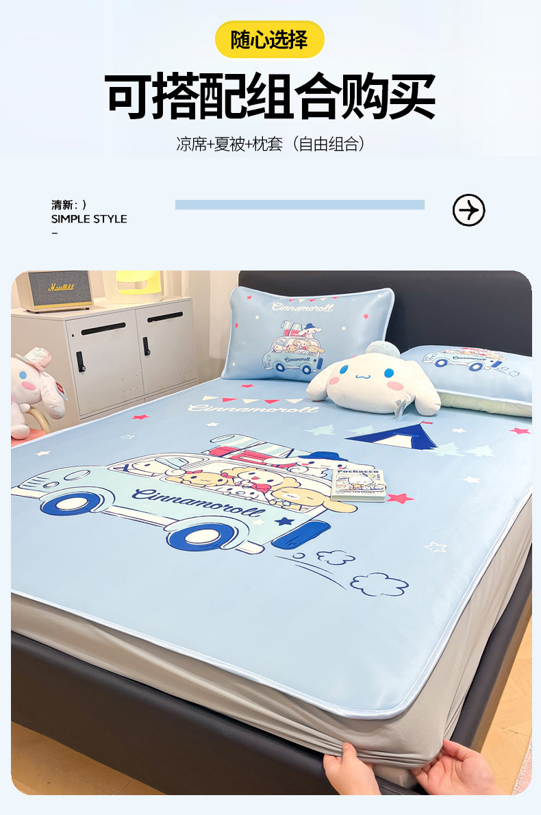 当前位置: 91家纺网 > 商品网购 > 床上用品 > 凉席 > 暮思家居 2025新款正版授权A类大版数码印花三丽鸥可机洗1200D冰丝凉席可组合针织棉夏被四件套床笠款 床笠款-伙伴玉桂狗