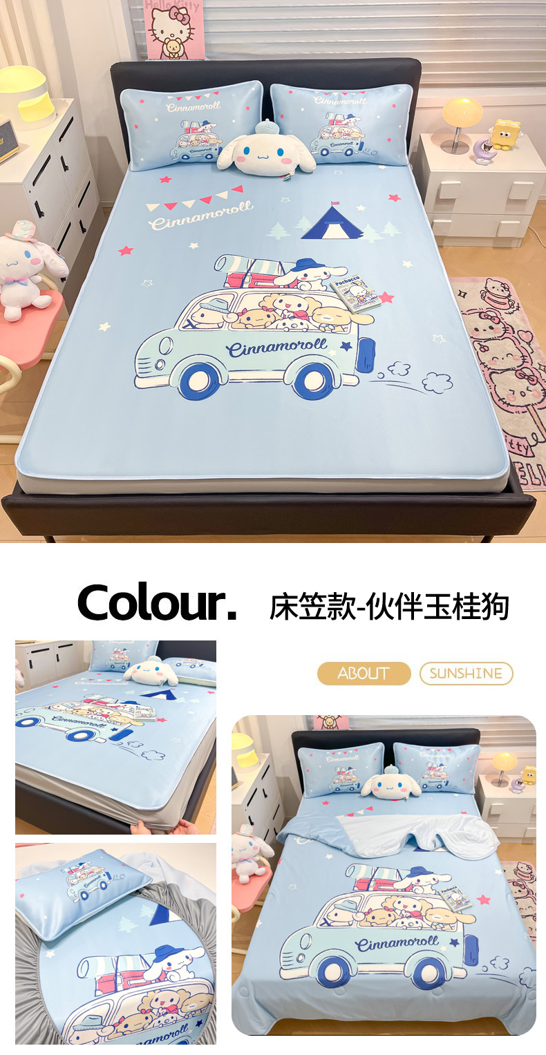 暮思家居 2025新款正版授权A类大版数码印花三丽鸥可机洗1200D冰丝凉席可组合针织棉夏被四件套床笠款 床笠款-伙伴玉桂狗