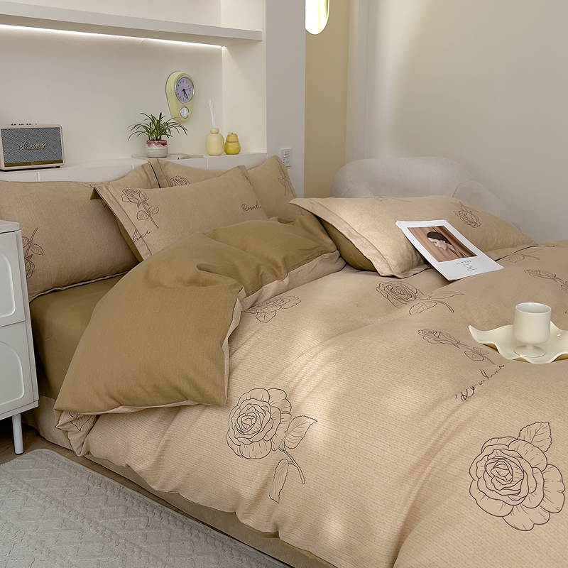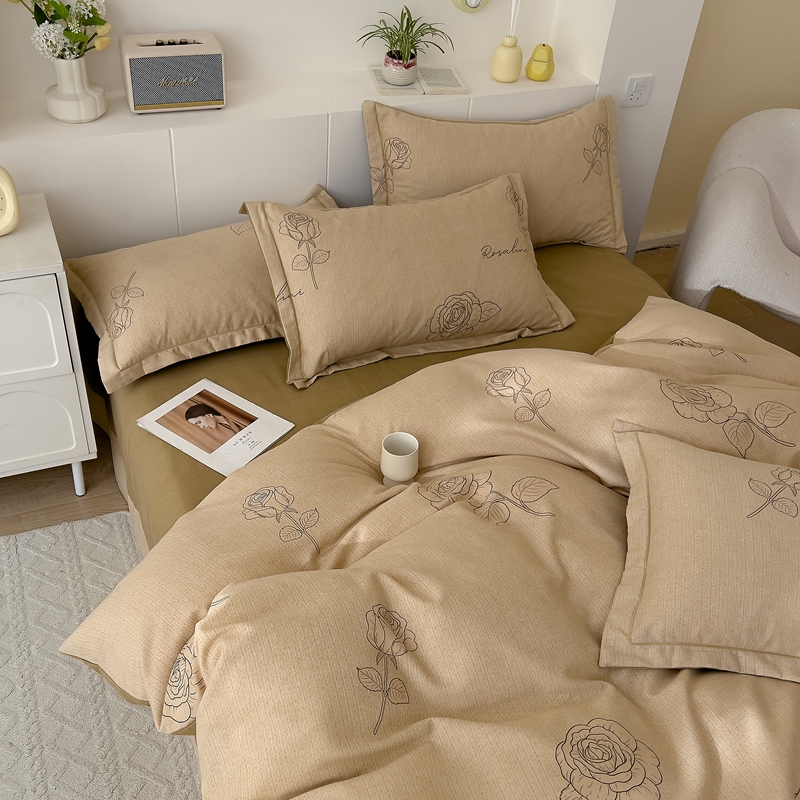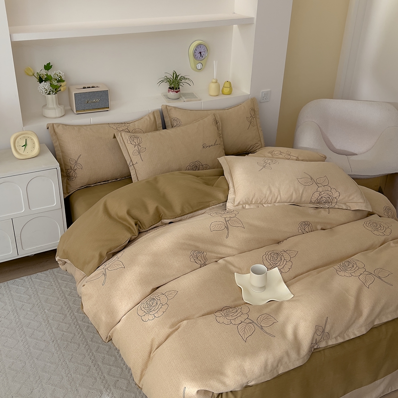 当前位置: 91家纺网 > 商品网购 > 床品套件 > 四件套 > 普通磨毛四件套 > 优品阁 2024新款全棉磨毛四件套 法风玫瑰-咖