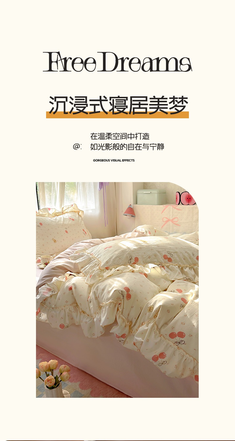 商品名称:(总)冕悠家纺 2025新款A类法式花边四件套超柔裸睡级床单被套三件套-风格一+微信提供买家秀