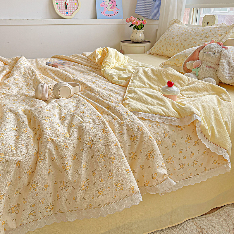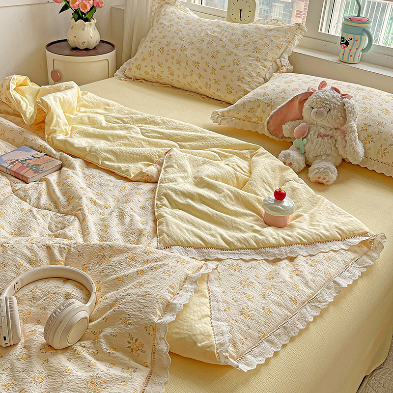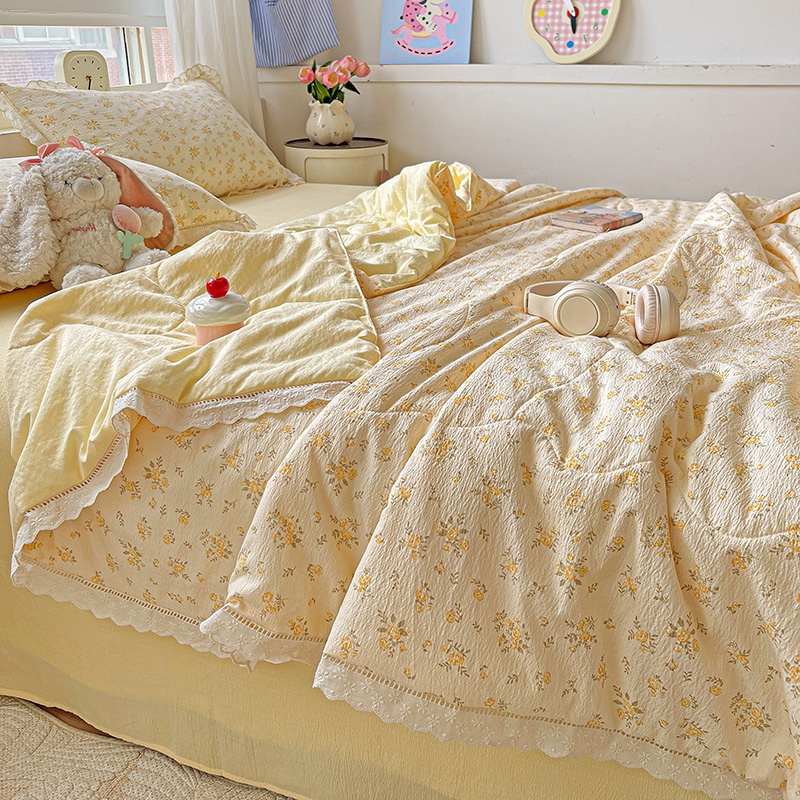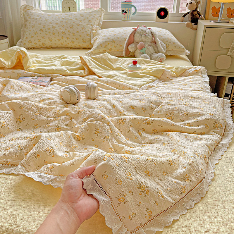 2025新款云感皱皱纱全棉花边款夏被四件套